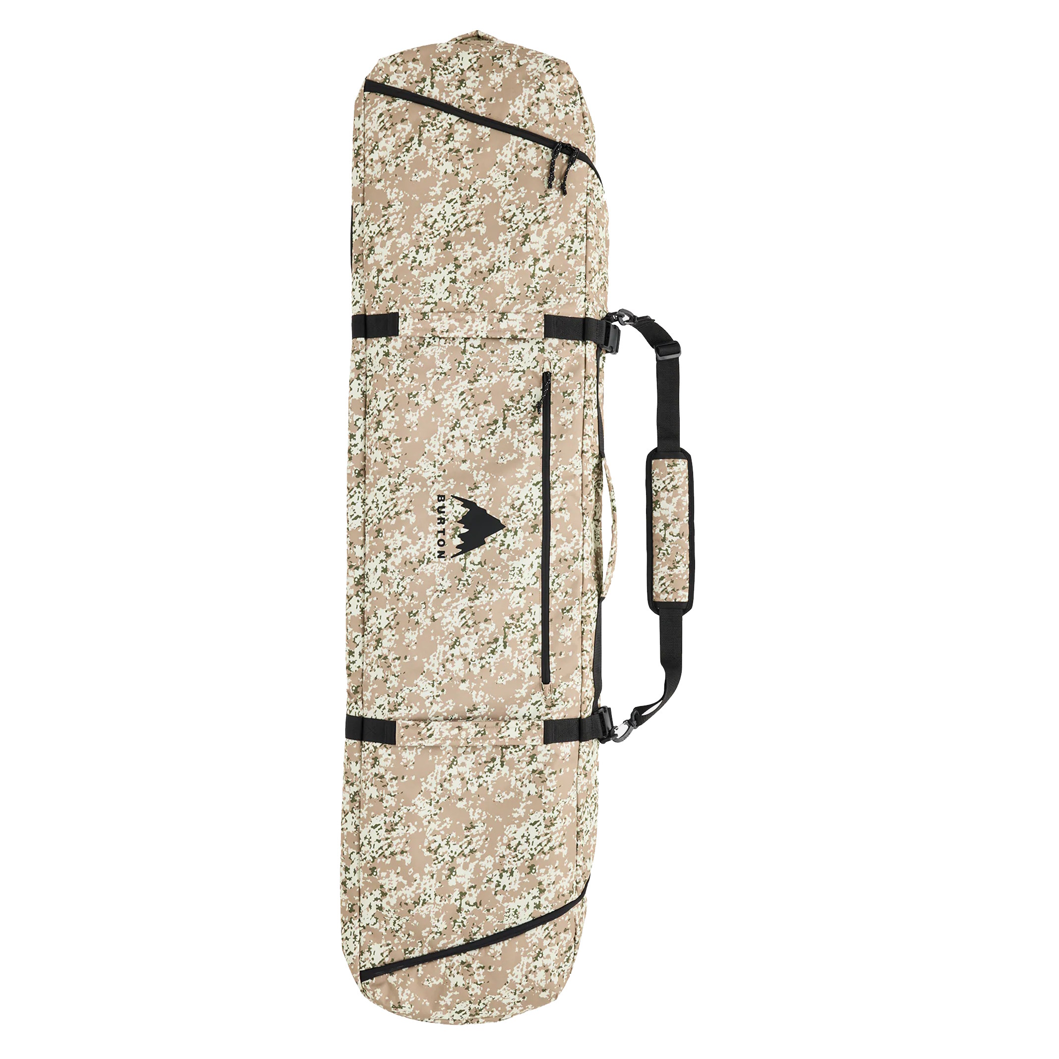 The Burton Gig Bag Snowfall Camo board bag is the ultimate solution for the snowboarder on the go, car, train, or plane no matter how you are getting there this bag will definitely make it easier for you because it is specifically designed to keep your boards, tools, and some extras organised making the most out of every inch this bag has to offer. Thanks to its padded protection this bag can also be used as a safe way to store your snowboards and etc. during the summer months. Without wheels the Gig bag saves a lot of weight which makes it easier to carry and can fit more in your luggage weight allowance! If you really need the wheels then checkout the "Wheelie Gig" bag from Burton.