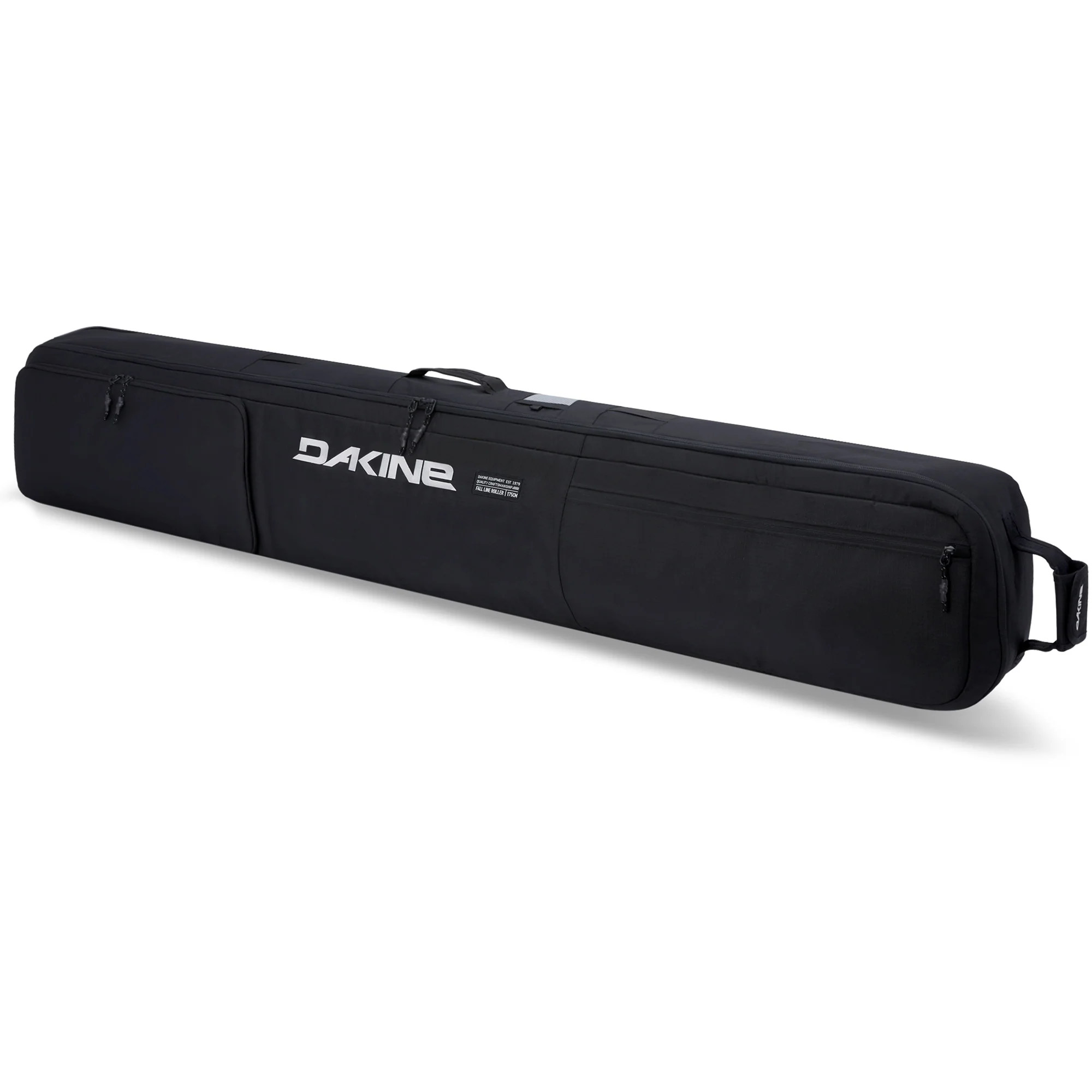 The Dakine Fall Line Ski Roller Bag in Black is built similar to the low roller, however has more space than the board bag meaning you can pack longer skis or even bigger boards! Constructed in Dakine's High Quality style with 360 Padding for extra board and ski protection, this bag when packed carefully can give you more than enough space for your slope essentials. The fall line bag has been redesigned for 2026 season more more tech and protection for your equipment along with changed pockets.