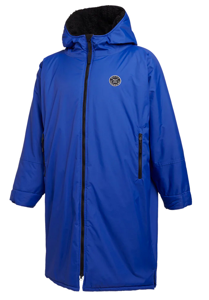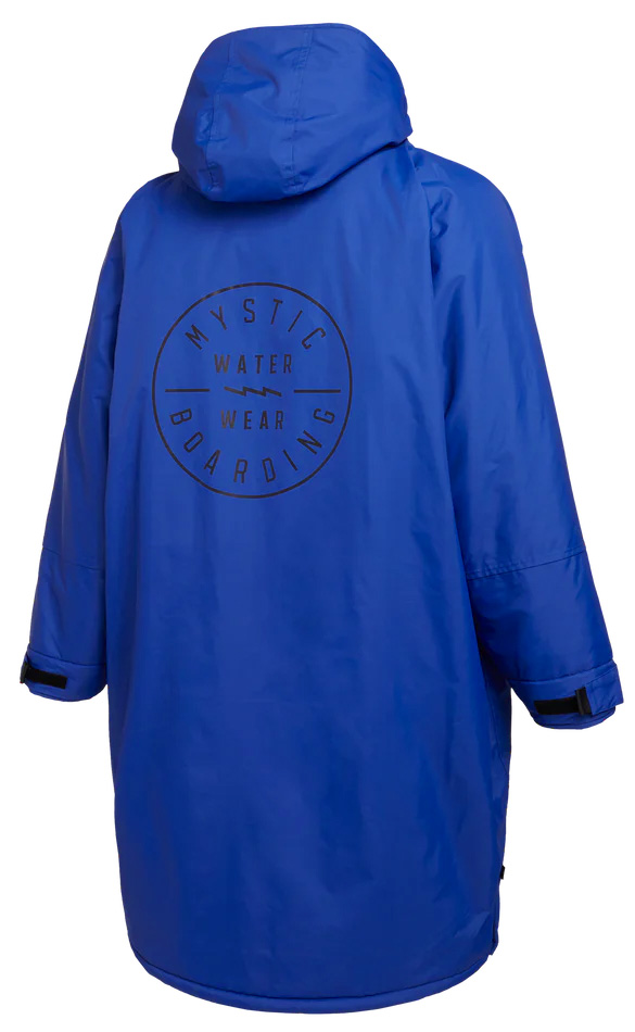 Mystic Explore 2.0 Classic Blue Robe Dry Changing Poncho, perfect for those after sesh winds and changing in and out of wetsuits, made with teddy fleece you will want to wear this everywhere, the fleece lining goes all the way to the pockets so when the wind gets really bad you can keep them warm and out of the elements as well as storing valuables and keeping them secure with zip up pockets. it comes in an oversized fit for breaking the wind around you and trapping the heat from your body inside the changing robe.