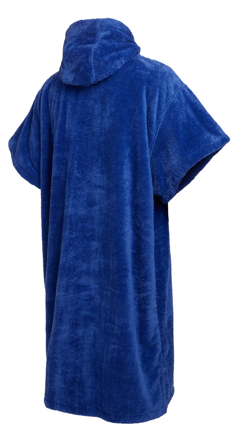 The Mystic Teddy Poncho Classic Blue Changing Robe, perfect for drying off with the water absorbing features and made from a 100% polyester 290gsm teddy fabric which is super warm so you can stay warm while changing. keep your valuables safe and on hand with the kangaroo pocket, great for keeping phones and or clothes in while changing.