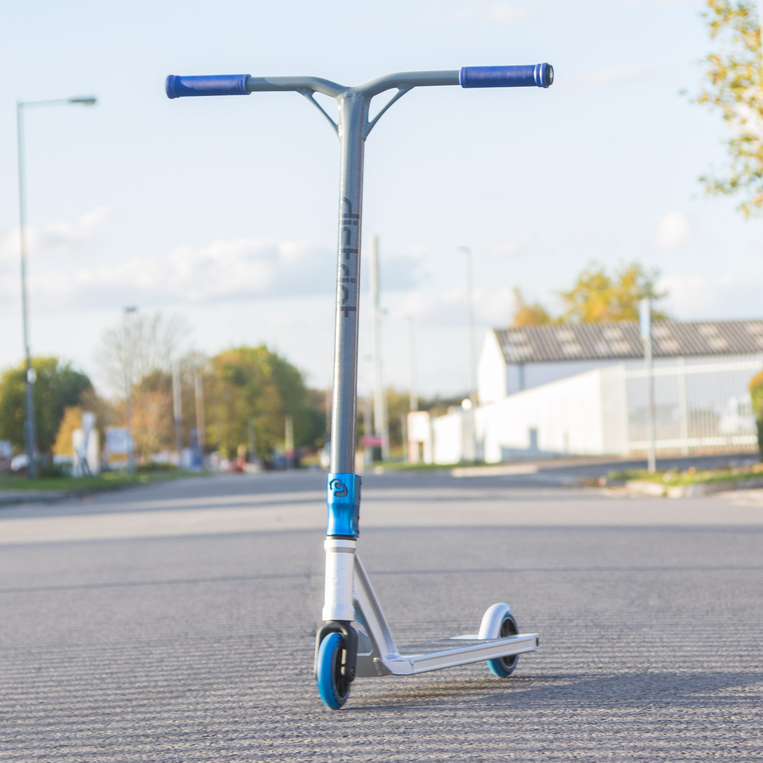 ATBshop are proud to present this custom scooter coming in at an incredible price. We have stuck with two colour options on these and they look sweet. This example is the blue and silver option. We love how blue compliments the silver deck so well making it really pop out. This scooter has been carefully thought out to appeal to a rider that wants to do a bit of every type of riding.