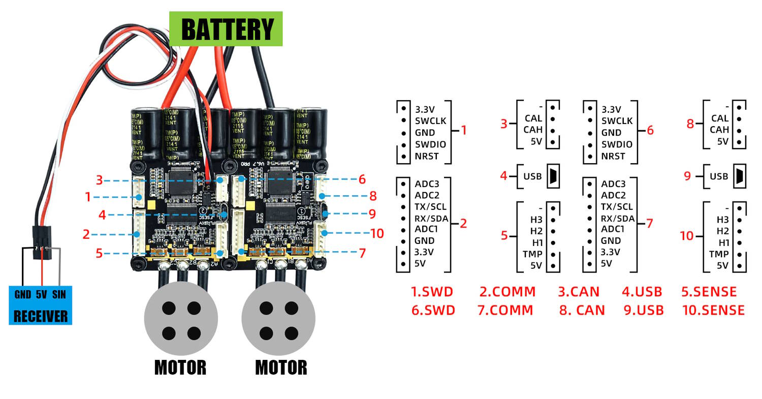 - Firmware: VESC Project Version 5.2 Shipped and recommended, newer firmware may damage the controller.