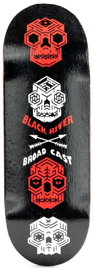 This Blackriver X Broadcast deck has a one of a kind graphic designed by canadian fingerboard artist Broadcast, real wear graphic scratches like a real skateboard would on ledges, rails and any kind of obstacle which can be ridden. 5-Ply Canadian Maple deck with Blackrivers high quality construction and print. Coming with a sheet of uncut catchy riptape, just apply, setup and shred.