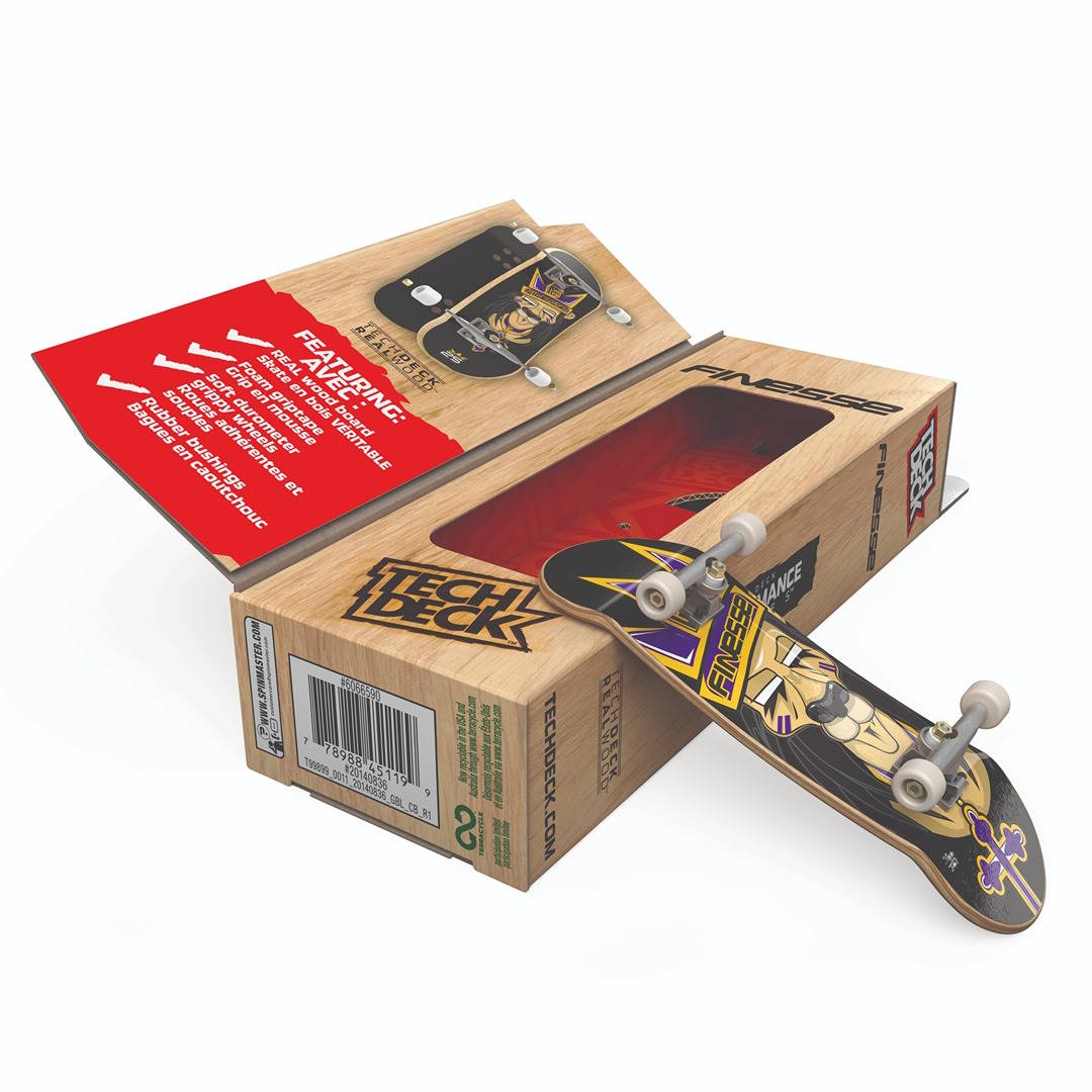 Take your fingerboarding skills to the next level with the Performance series Wooden Tech Deck range. Made from real wood with authentic skateboard graphics from your favourite brands to replicate the feeling of a real skateboard. The wooden tech deck enables better pop allowing to do bigger tricks, foam griptape gives you more control so your push and progress faster. Rubber bushings in the truck allow for tighter turns and more realistic experience when hitting your tricks.