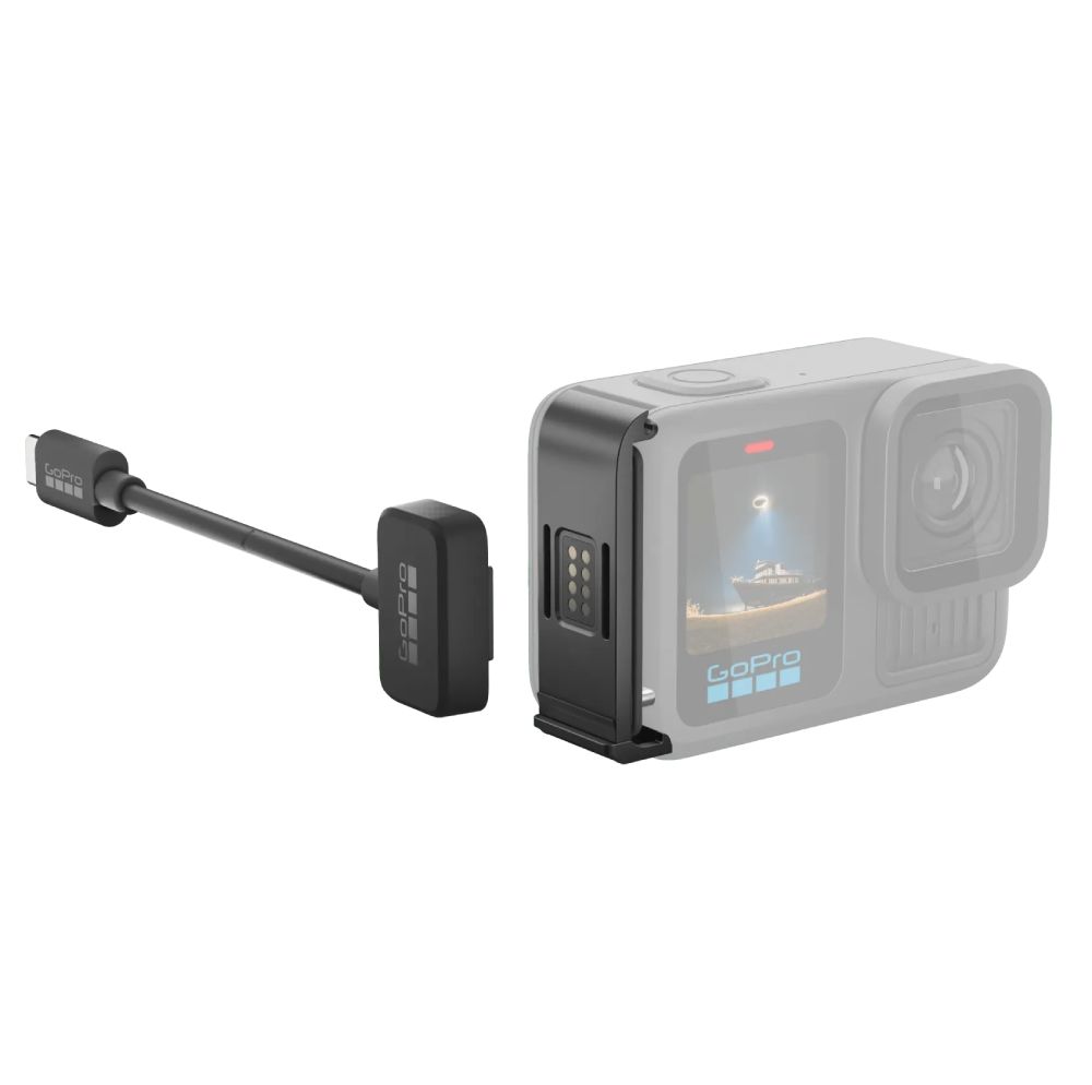- With a super-strong magnetic power cable connects the Contacto door to any USB-C power source to keep your GoPro Camera charged at all