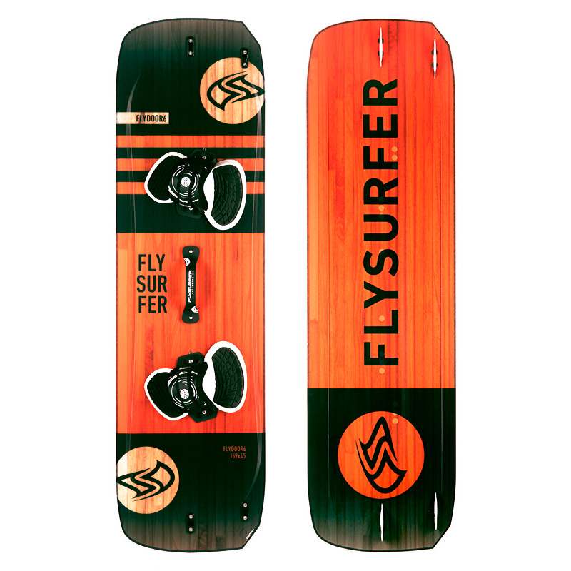 Flysurfer Flydoor6 Kitesurfing Board Everyone has experienced it. You get to the spot and the wind-forecast has been a few knots too optimistic. With a Flydoor in your quiver this means having fun, instead of hanging around on the beach. The unbelievably early planing ability combined with the unexpectedly good handling is what makes the Flysurfer Flydoor6 stand out above the rest. Riding toe-side, jumping, cruising. The Flydoor6 just feels much smaller than it is, however still delivers unmatched upwind performance. Thanks to the offset toe fins there is no other twintip board, except the FlyRace, that goes upwind better.