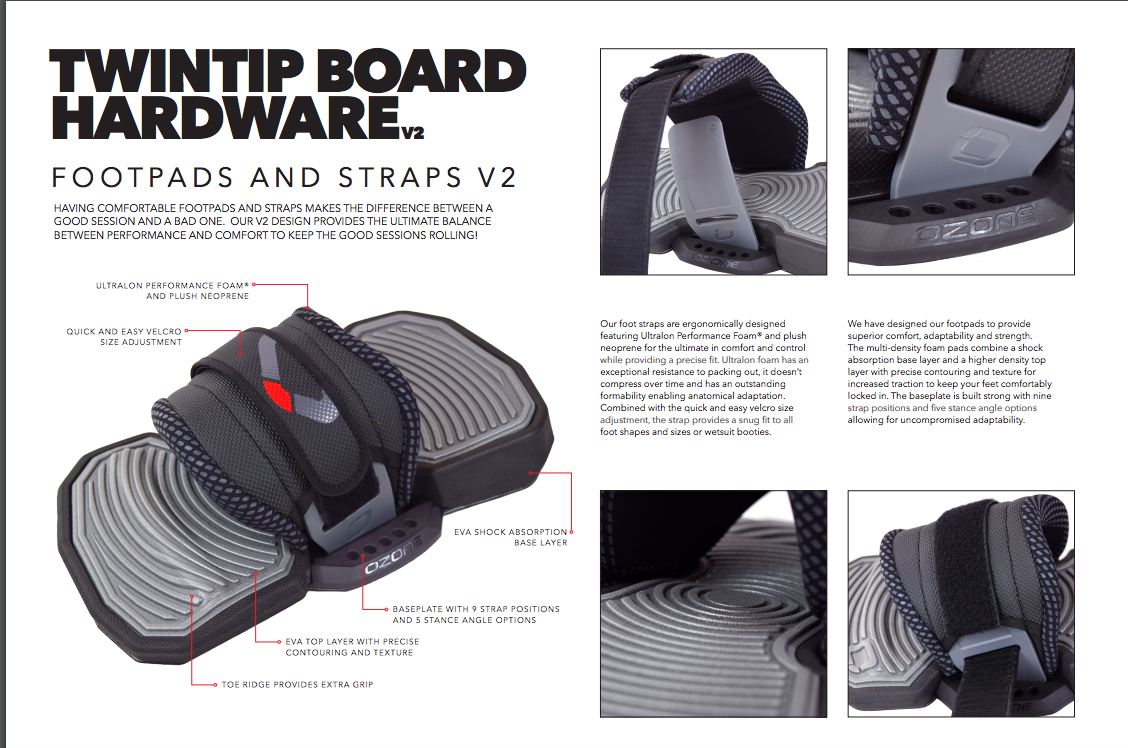 The comfiest straps ever to make it under your feet! The Ozone pads and straps are back now in the updated V2 version! Now featuring a dual density footpad with fixed insert holes for a quicker and more effective mounting option. A plush neoprene strap hugs your feet to a horizontal grip without any bunching up, discomfort or over tightening. With endless adjustability in stance options you can customise to perfection for the ultimate ride!
