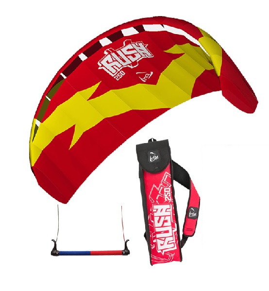 The HQ Rush V 250 is the perfect trainer kite for learning the basic maneuvers and gaining the muscle memory for flying bigger kites, the build quality is unmatched with high end materials. The Rush V 250 offers smooth and precise flying with a very stable feel in a variety of conditions, it's rated to fly in wind speeds of 5 mph to 24 mph. The reduced bridle lines and reshaped design offers safe and easy set up the Rush V also offers a bridal configuration that provides for a simpler self relaunch and is about as good as it gets for a 2 line kite.