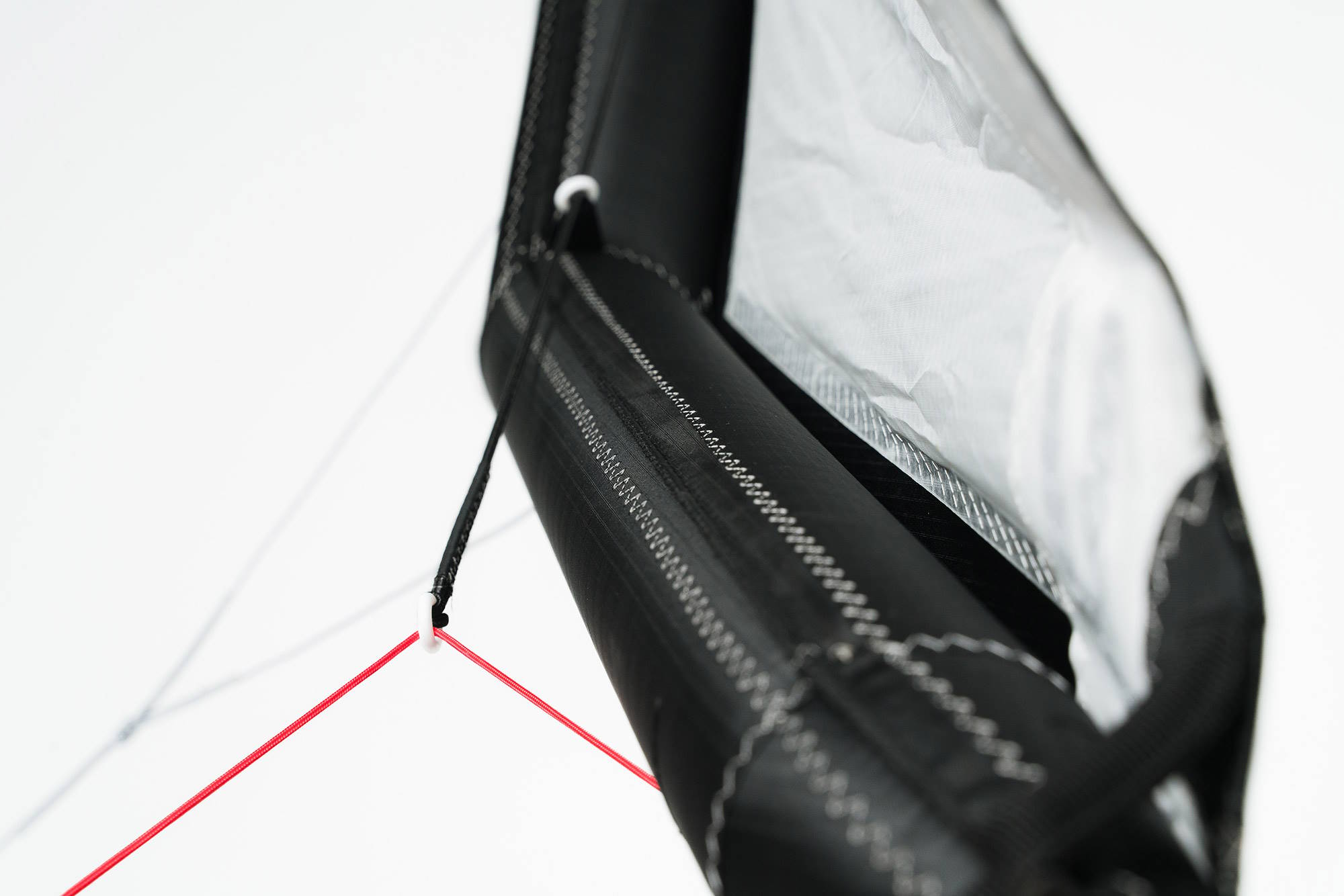 The kite is super lightweight with just one single strut in the canopy but doesn't make it hard to relaunch or overly flappy in the sky. Just if the wind drops then the kite doesn't fall out the sky! With this light weight and easy handling then it is super good for beginners coming out of lessons and also confidence inspiring for experienced riders people getting into foil riding where you would be riding a smaller kite in lighter winds so weight is important.