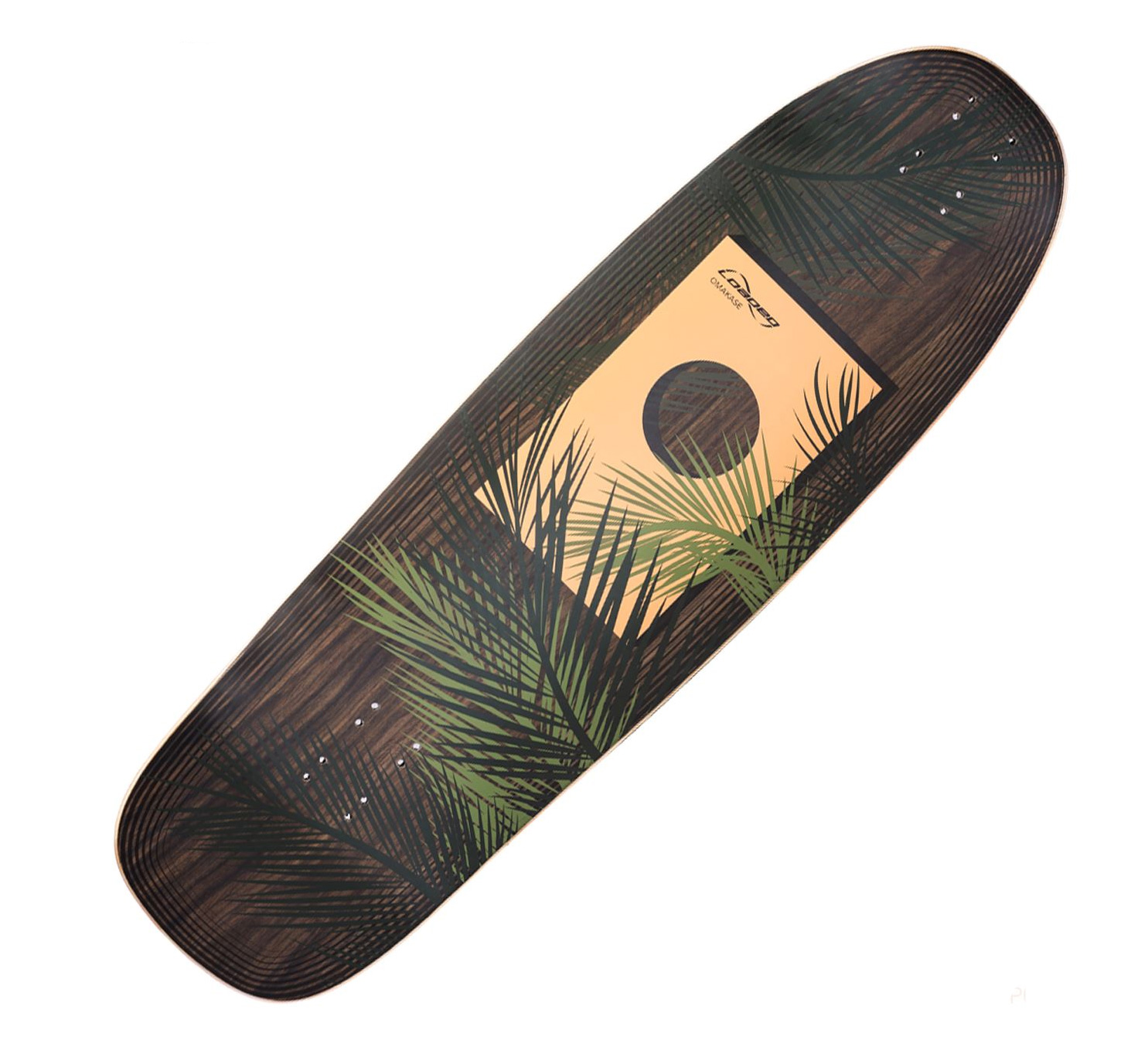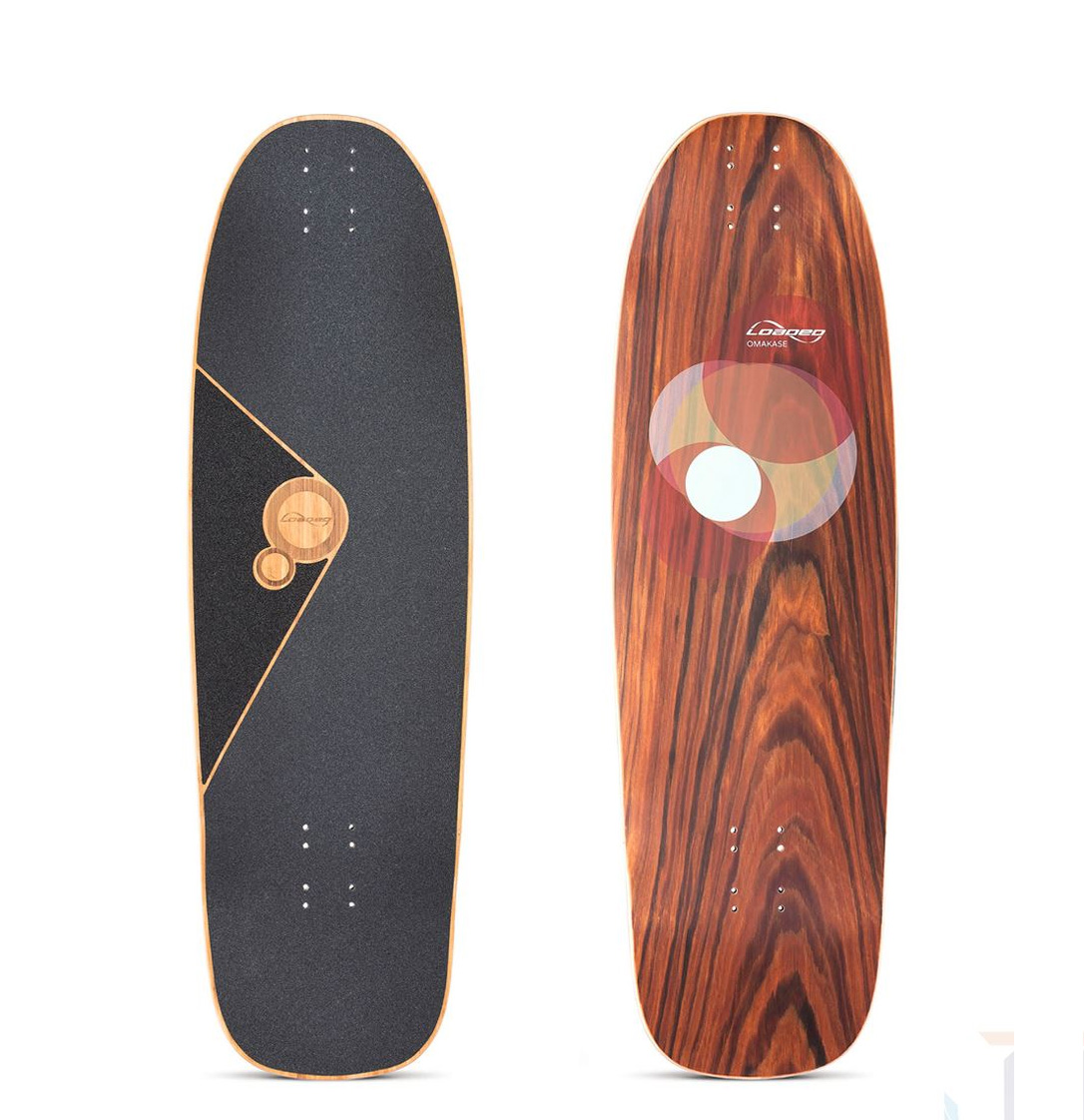 Stiff, Light and Durable: A three-layer bamboo core is sandwiched between fiberglass/epoxy layers for lightweight strength. The Roe graphic features a rosewood bottom veneer, while the Palm graphic sports a black walnut bottom veneer. Starting with the Omakase, Loaded have begun expanding to new manufacturing resources to bring you a broader array of awesome skateboard experiences while maintaining the Loaded quality commitment.