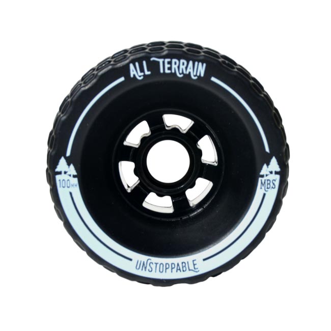 The all new MBS All Terrain wheel is here and they're sick. Closing there gap between Mountainboarding and Longboarding, these wheels, with a duramiter of 78a and made from super high rebound urethane, these wheels grip in the most extreme conditions, thanks to the wobbly tread design.