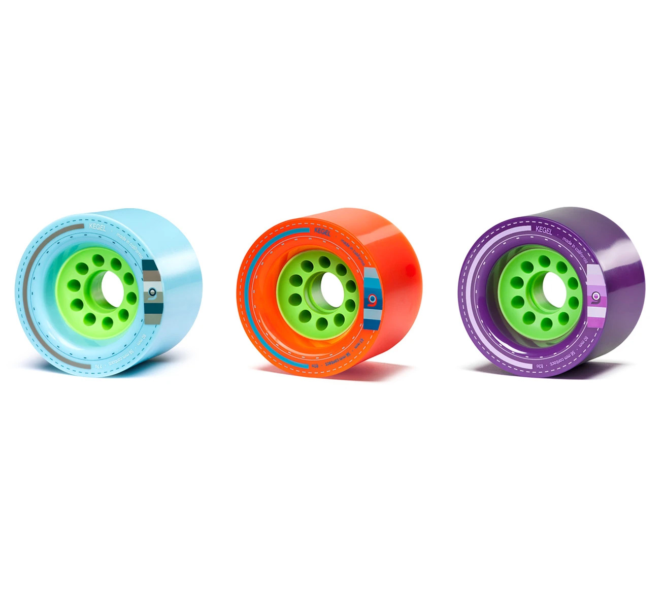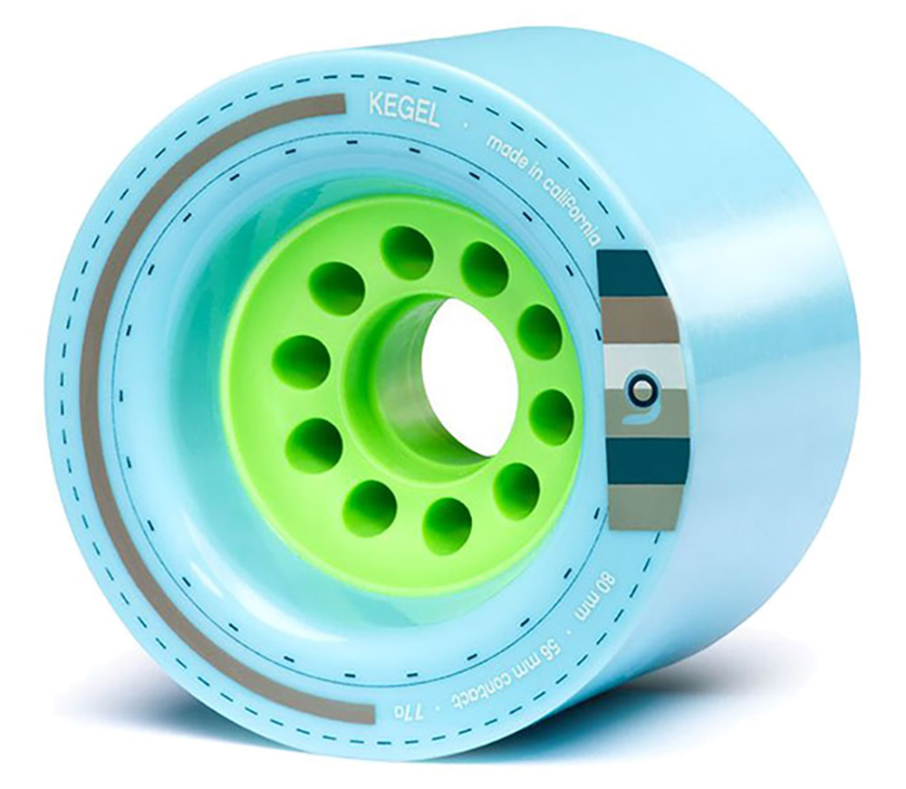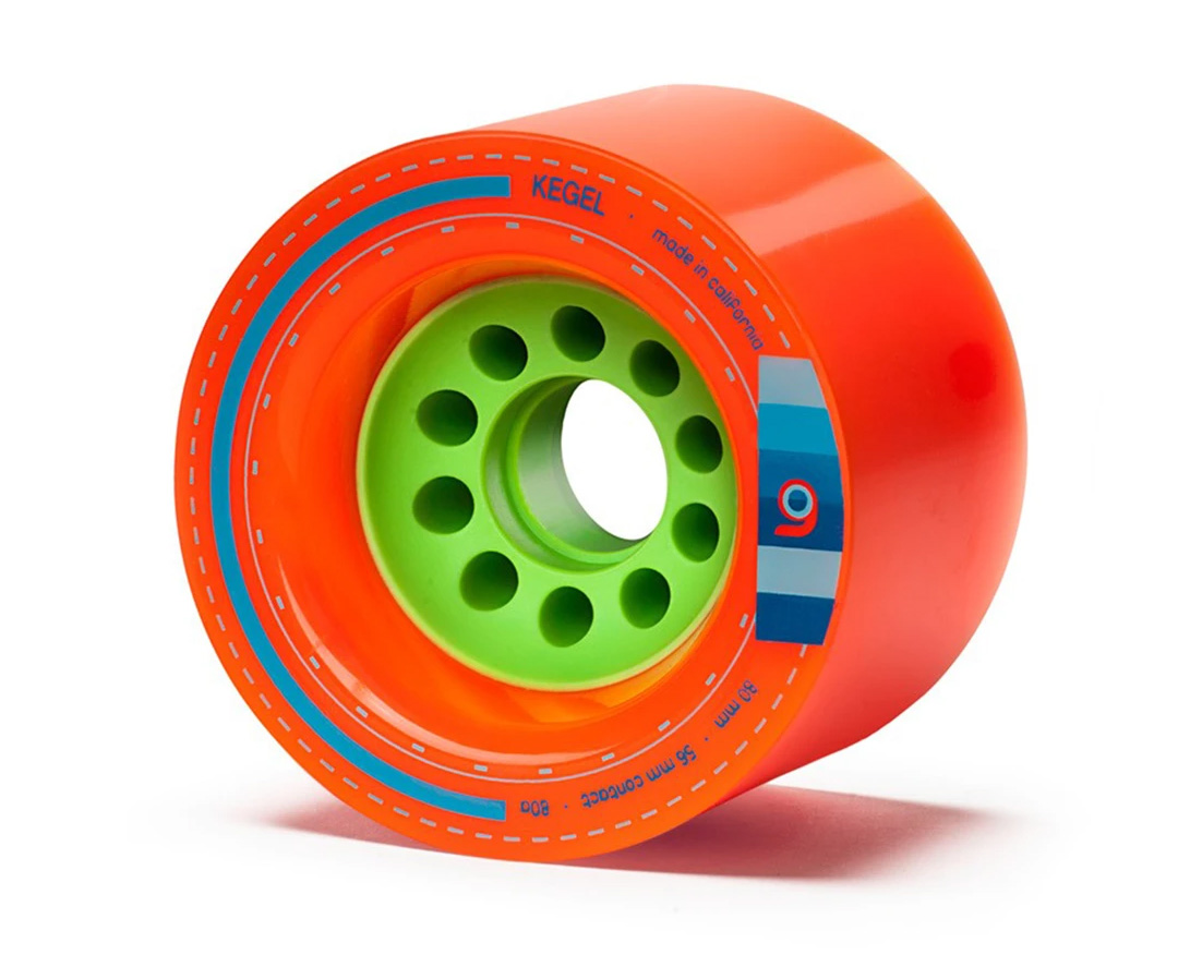 The Kegel by Orangatang is designed for riders who like to go fast! thanks to its stiffness and strength along with it's heat resistance . It's large 80mm diameter enables it to generate high roll speeds to help you build and maintain more speeds while the 56mm width allows a versatile balance of traction and slide response.