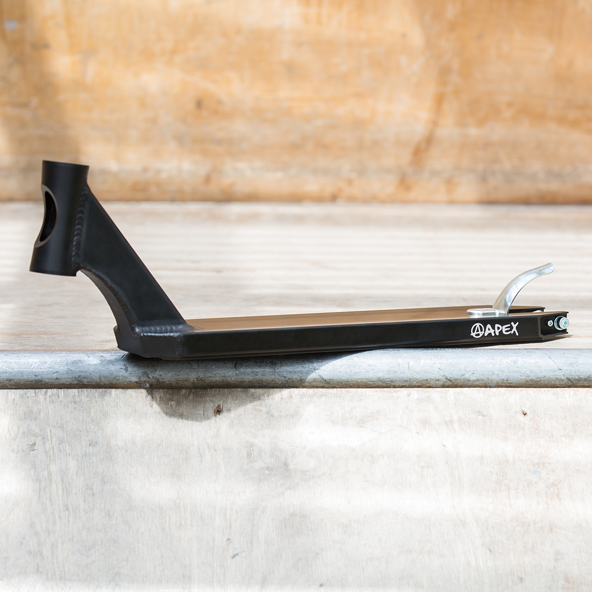 The Apex pro scooter deck has been in development for the last three years. Apex have taken all the best features from scooterings most popular decks and added their own expertise and inventions to come up with one of the most advance decks currently available.