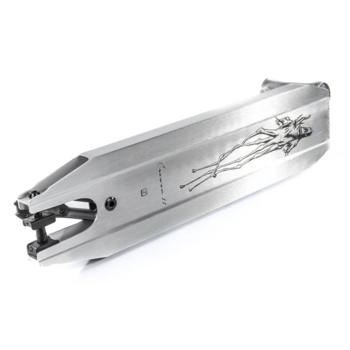 Ethic DTC is back with the V2 of one of its classic decks, the Erawan deck. More solid than its previous version. This new version has an awesome raw brushed aluminium finish. The specs continue to get better with the deck now measuring 4.72″ wide and now being able to fit up to 120mm wheels. Ethic have continued to dial in their flagship beginner park deck with a stronger extrusion and improved size to weight ratio this makes it much easier to execute those park, whip and overhead tricks with the 21.25″ size weighing just 1.25kg.