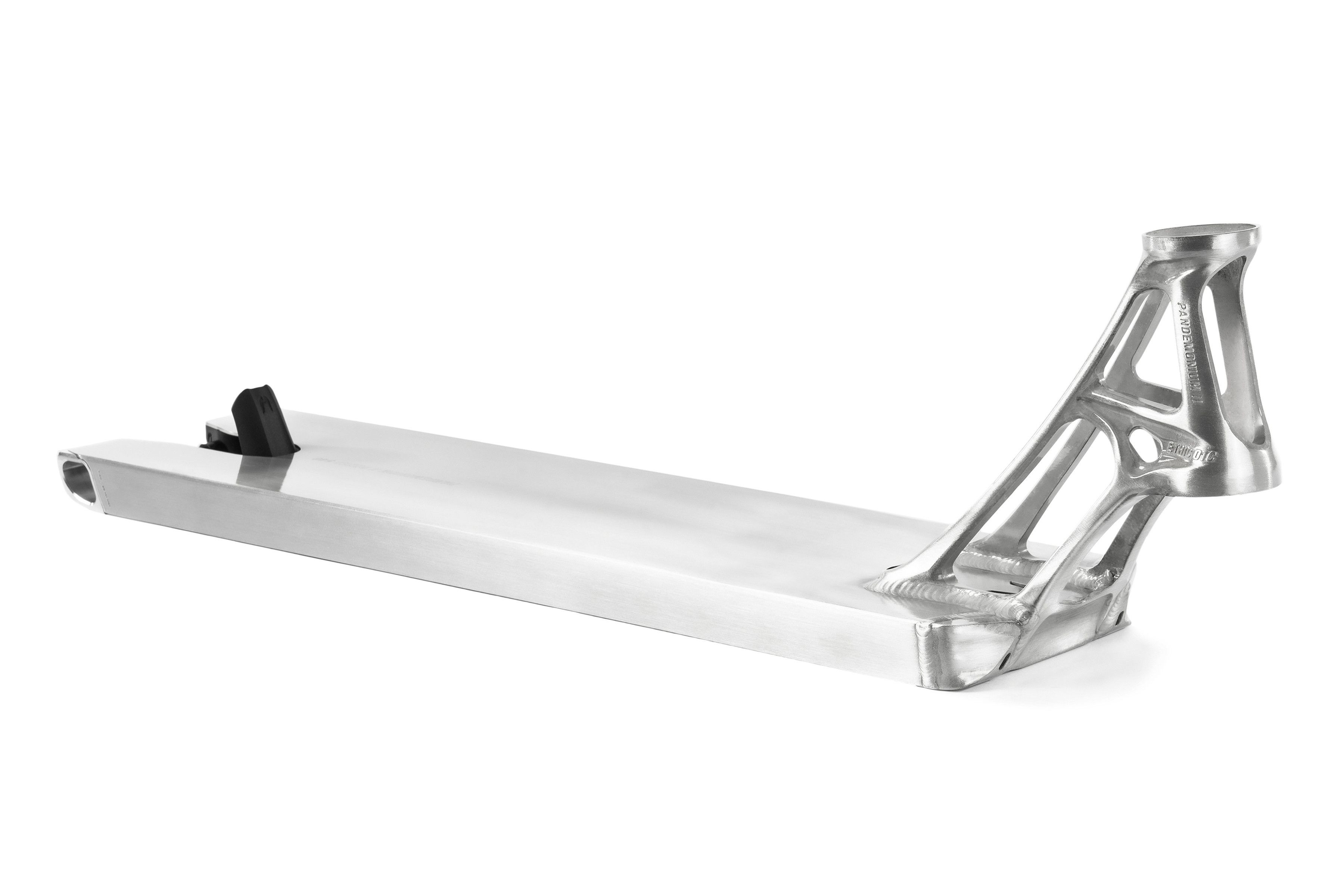 Introducing the Ethic Pandemonium V2 Boxed Deck in Raw polished aluminium. This is a street-focused, boxed version of the lightest scooter deck in the world, designed for riders who are looking for incredible control and agility. Crafted from premium materials, this deck seamlessly combines remarkable strength with an ultra-lightweight profile, allowing you to execute tricks and stunts with effortless precision.