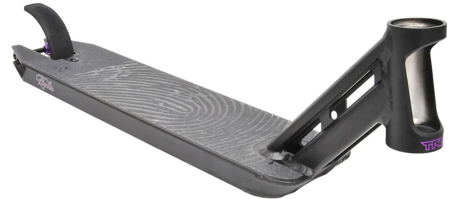 New and improved, refined to reduce weight and improve function, the Psychic Scooter Deck 20 x 5.0in Black Purple Triad features a new V2 fend off brake system. This scooter deck is lightweight and comes with a stunning bold graphic, which is a headturner. This scooter deck is at a great price range, for a deck of this quality.