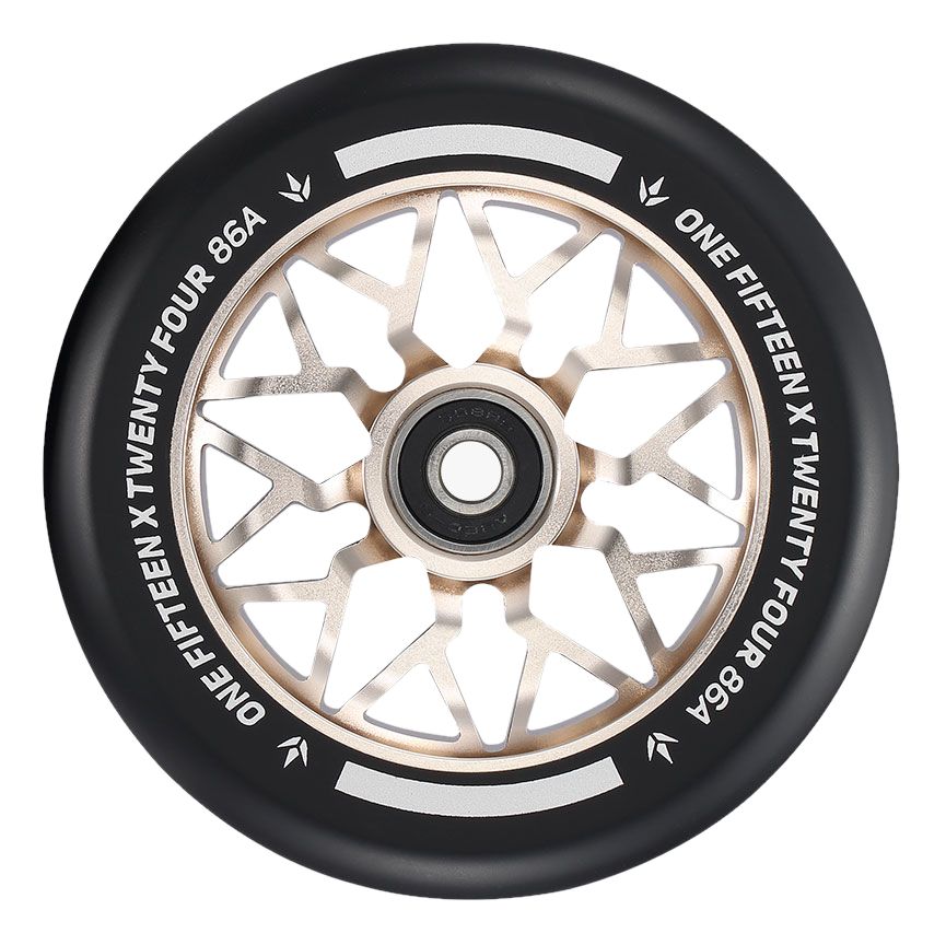 Blunt Envy's 115mm Sector stunt scooter wheels come in at 115mm with a 110mm core including a thick, high rebound urethane poured up to 115m diameter. Creating one of softest pro scooter wheels offered by Blunt Envy, resulting in a smoother riding experience , great shock absorption and control for street and park riding.
