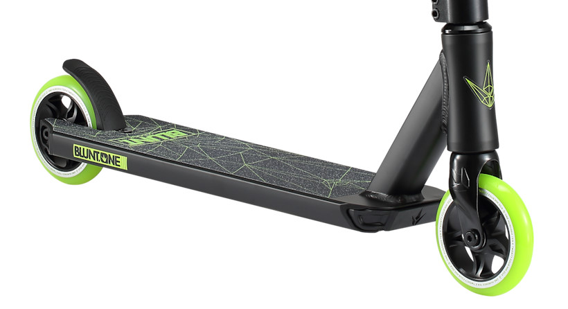 The deck made from 6061-T6 aluminium which is aircraft grade coming at 480mm/19" long and 120mm/4.75" wide which is the perfect size for the kids to kick around on. Bars are constructed with 4130 Chromoly steel wrapped in soft and durable TPR handgrips. Blunt One S3 bars come in at 580mm/21.65" high and 20.5" wide which is the perfect height for tricks. Steel Blunt COLT fork with internal headset compression system with Blunt one S3 wheels with high grade 86a polyurethane. Also the Blunt S3 features the Pro level brake system which is on their high end completes.