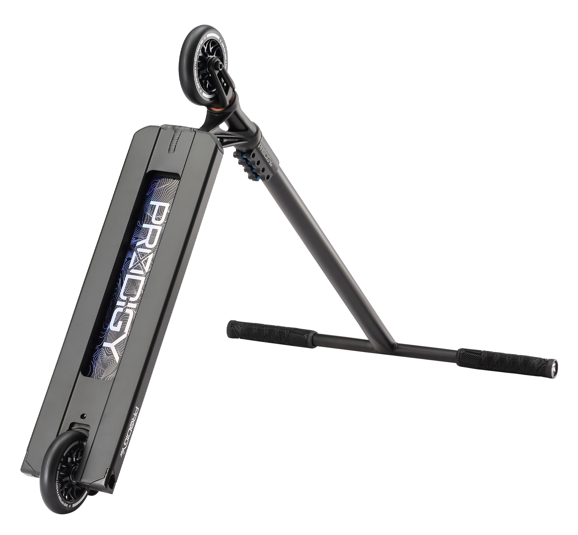 The rest of the Blunt Prodigy X Scooter has kept the same as the X with the Fully Butted T Bars which have varied internal wall thickness to keep the strength and drastically reduce the weight. Omen SCS has stayed for strength and a much more street compression system. The low stack headset also streamlines and simplifies the compression and bearing interface.