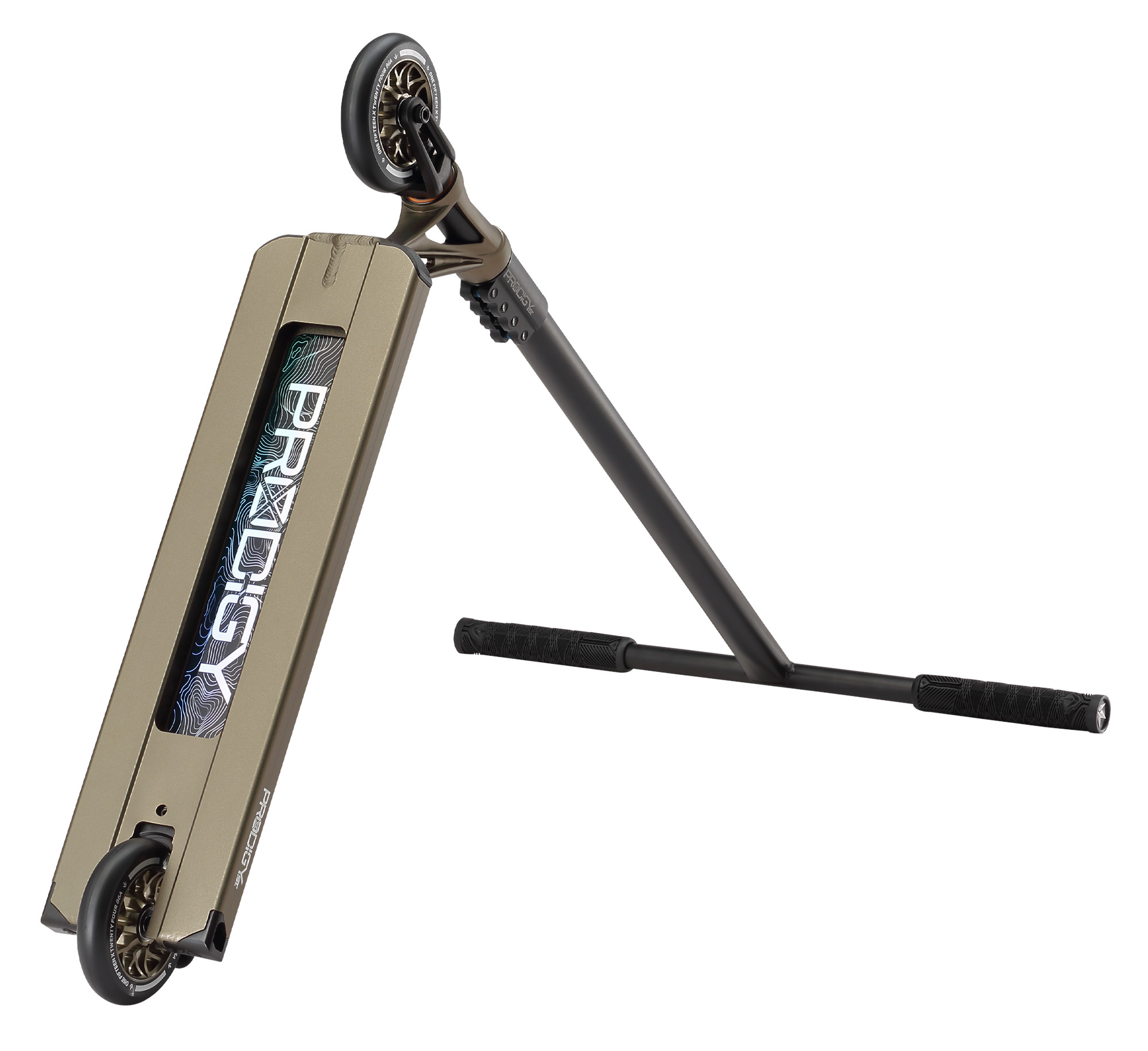 The rest of the Blunt Prodigy X Scooter has kept the same as the X with the Fully Butted T Bars which have varied internal wall thickness to keep the strength and drastically reduce the weight. Omen SCS has stayed for strength and a much more street compression system. The low stack headset also streamlines and simplifies the compression and bearing interface.