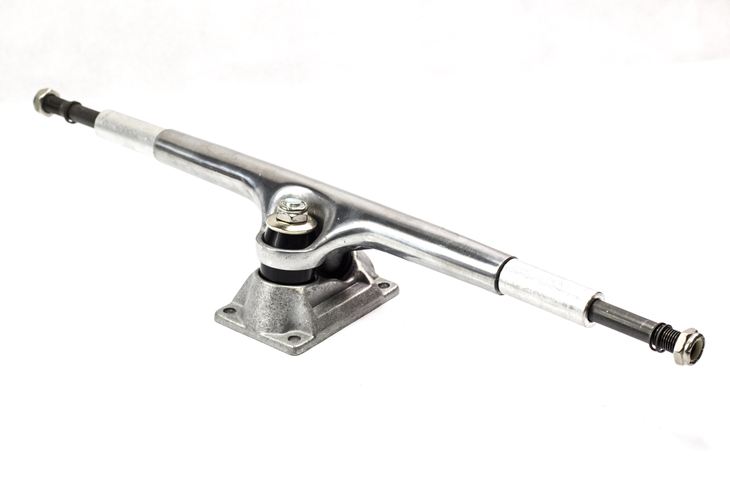 This is a replacement extended skate truck as used on the scrub range of boards and similar designs. It has a nominal of 12mm or 10mm (actually 9.54mm) diameter axle and is approximately 15" wide. This is by Scrub and Raid companies and will often fit many other brands of mountainboard.