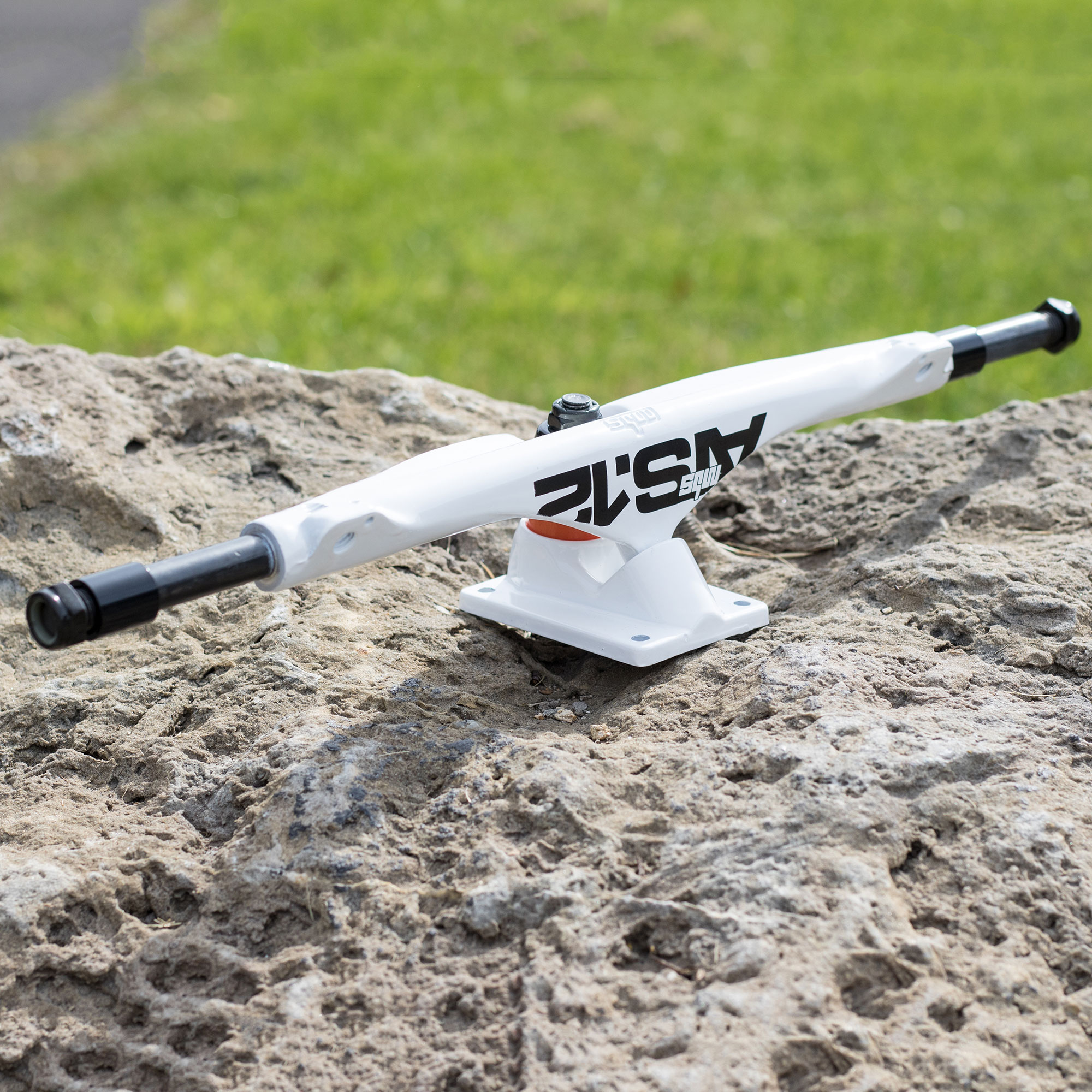 These are perfect for kite boards where a strong quick turning truck is needed. The new white paint job and black graphic also add to a premium look while still keeping an amazing selling price.