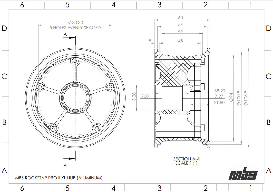 The Rockstar Pro II XL Aluminium Hub Bronze features a 60mm rim width, MBS's widest hubs ever. The increased contact patch will be sticking to concrete and give you increased stability and makes riding on loose dirt feel like your floating. Their unique faceted internal wall design works seamlessly with MBS balancing weights for an easy and durable balance solution which makes it the perfect wheel hub for heavier tires. Precision machined from 6061-T6 aluminium with a matte anodized finish and laser engraved rim detailing. They're as effective as they are stylish perfect for any rider looking for a range of riding styles.