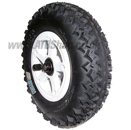 The MBS T3 Tyres in Black is the third tyre from MBS's factory. This is aimed at providing more lateral side grip than the T1 Tyre. It is still a light 2 ply tyre but it is a flatter profile with a double centre ridge and higher knobbles at the edges. This makes more rubber in contact with the ground and provides more side grip. This is ideal if you find you need more grip than the T1 tyres.... for example it will allow more power to be held with a kite and better upwind performance. Or will hold a tighter line in a corner on a race track. Because there is more rubber in contact there will probably be a slight slow in acceleration as there is more drag than the T1 but it will be a trade off to less slide in the corners! We will have to see how the tyres perform in the races this year!