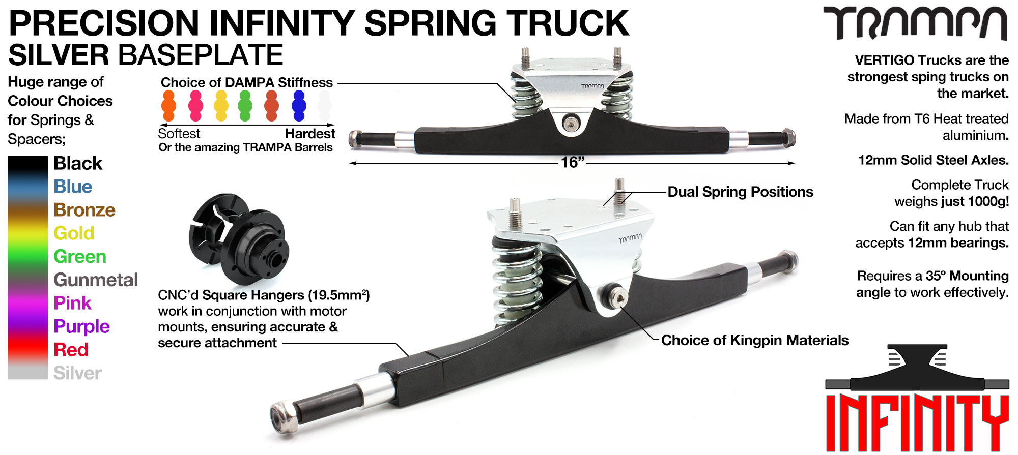 Trampa Infinity Truck Silver - These trucks will fit Trampa, MBS, Scrub and Kheo channel drilled boards.