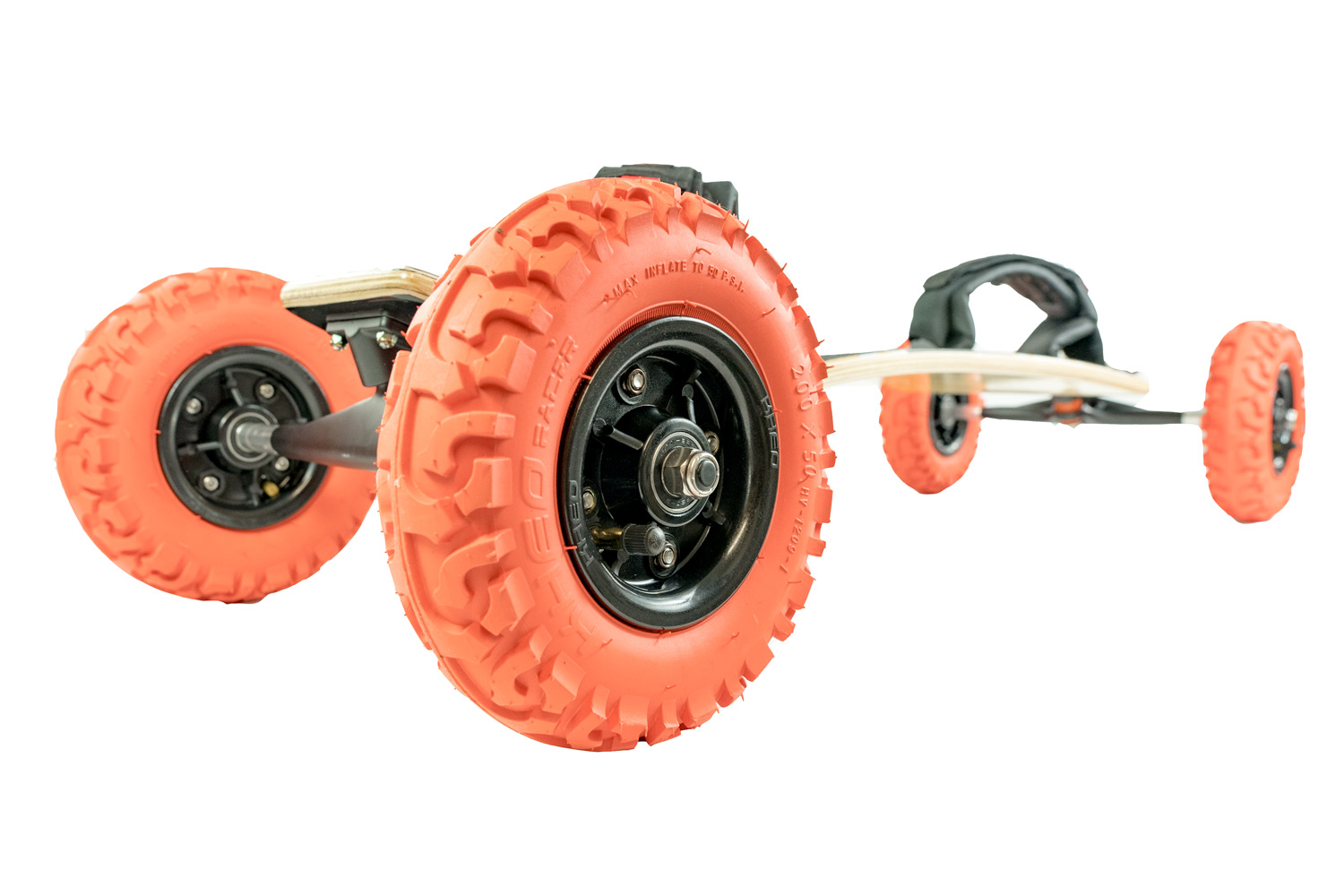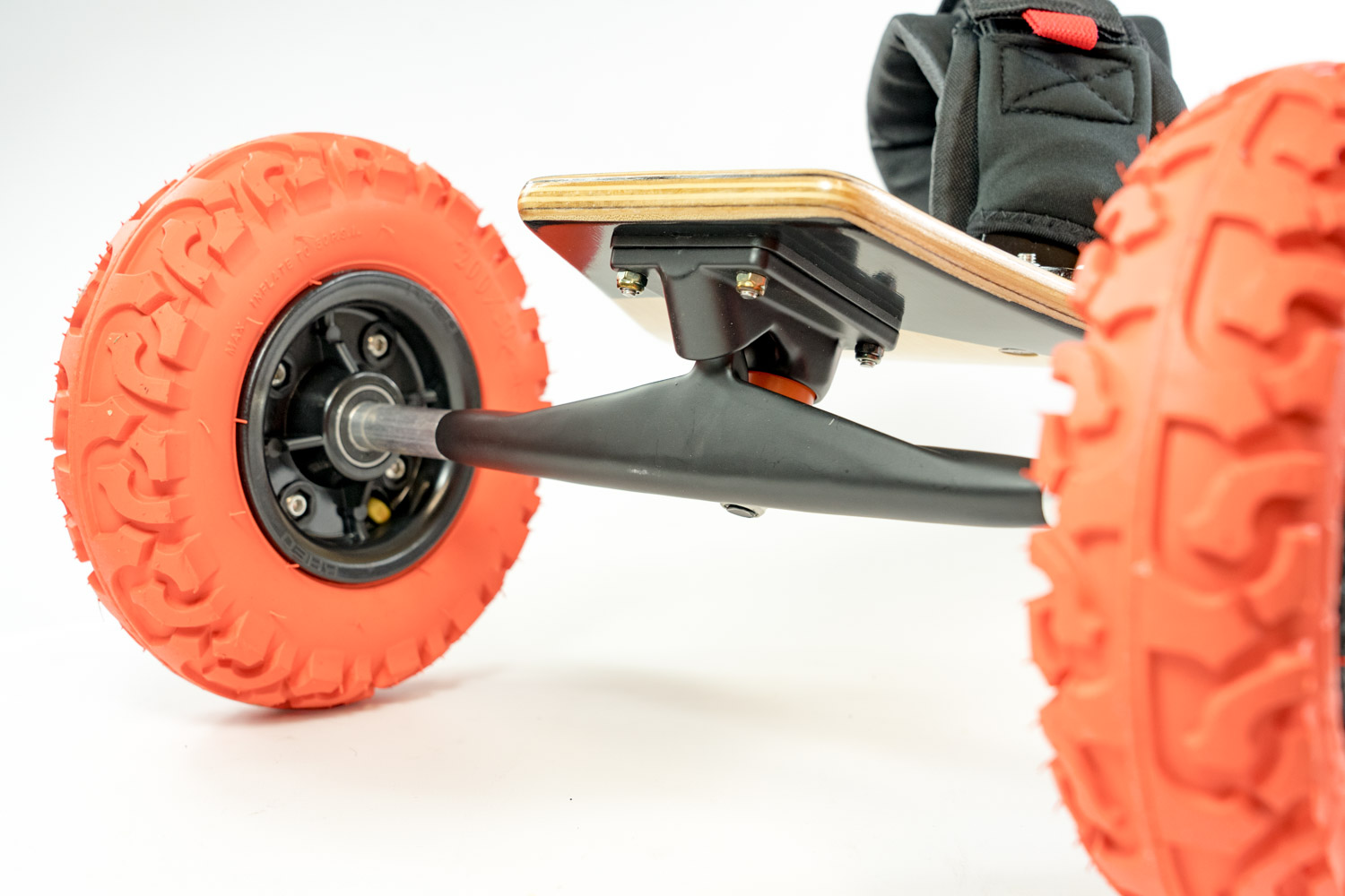 Combined with a super comfy Kheo C1 velcro binding you can rest assured your feet are going to stay connected to the board without any discomfort. The wheels consist of strong 2 piece disc hubs. These combined with either the 8″ or 9" race tyres give you the strength and grip to ride at speed and load up hard before launching a jump. They are also easy to slide and allow you scrub speed... if you need to ;)