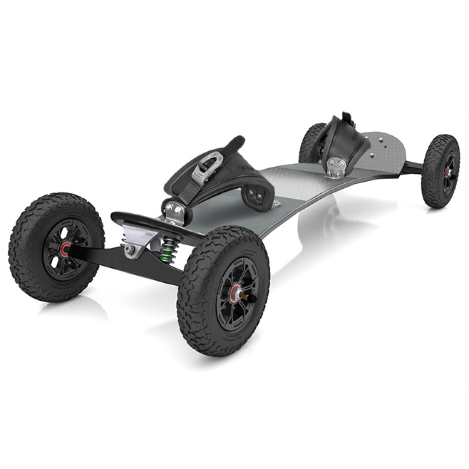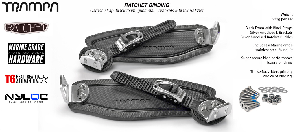This particular Trampa model is an well specc'd downhill and kite freeride board at a fantastic price. Great for cruising around or chucking about in the woods. The ratchet bindings are great connection and the wheels tyres and trucks are lightweight and tough. You can customise almost all accessories in colours and style but we do black and silver as standard with black hubs and tyres.