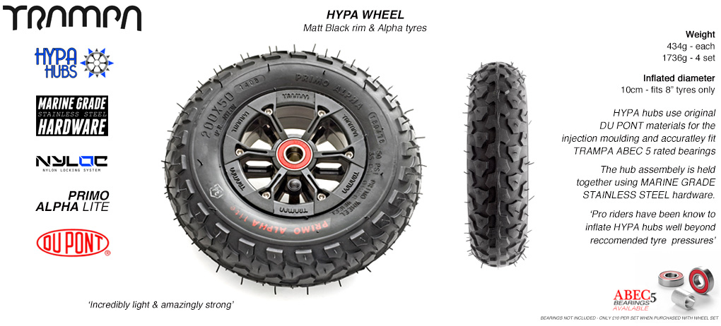 - Hypa Hubs with Primo Alpha or Treads Tyres.