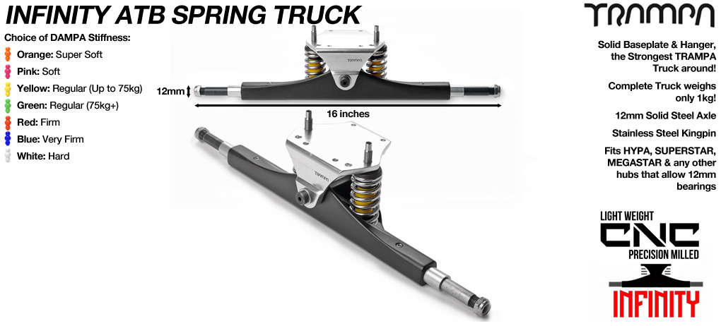 - Truck: Infinity Hanger Black baseplate Polished springs Green Dampa