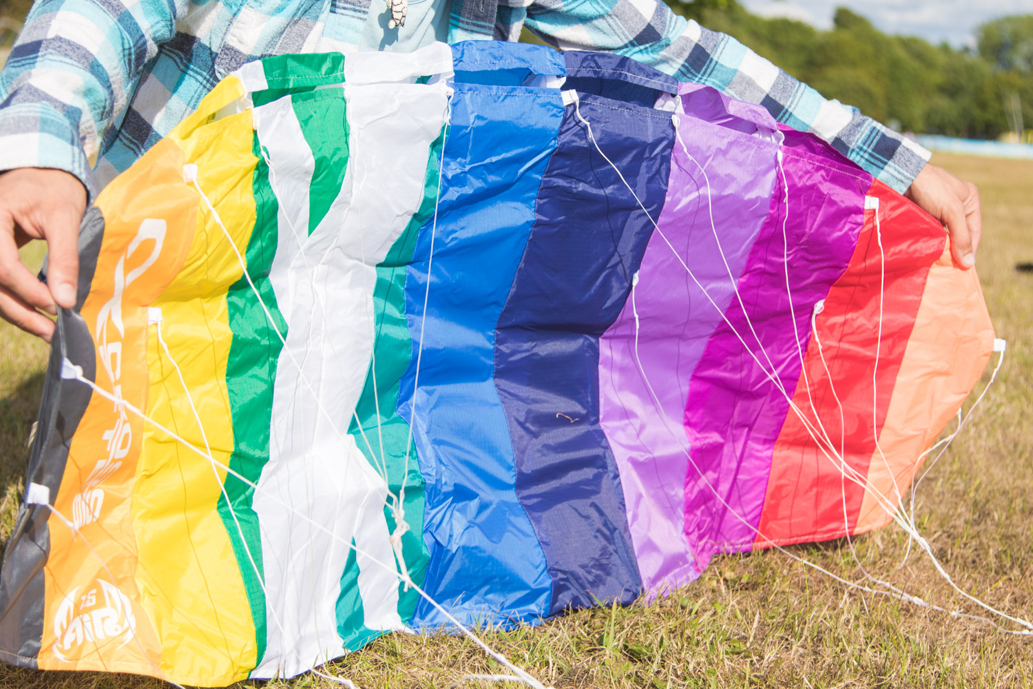 The Cross Air power kite comes in a vibrant rainbow colour and is made from a Polyester Ripstop. This fabric makes the kite fly better and compared with other brands offerings the price is better too.