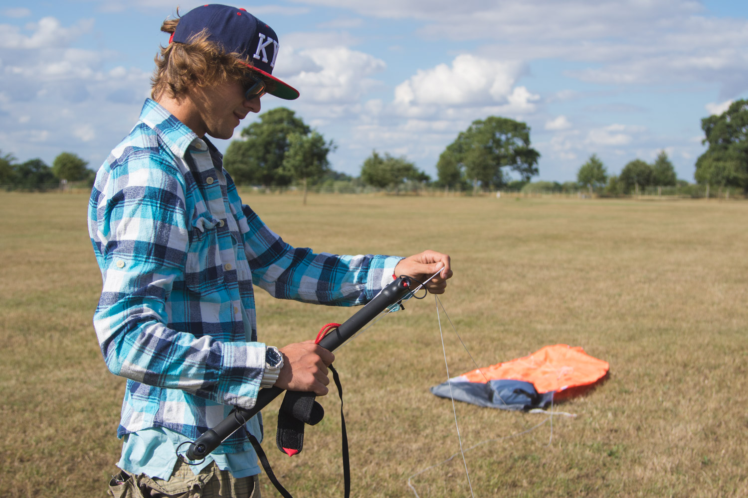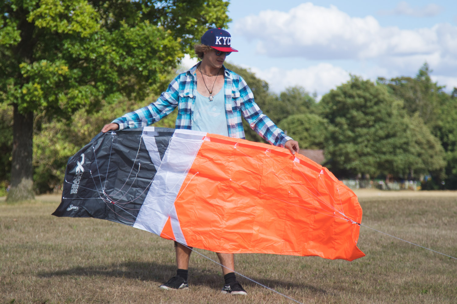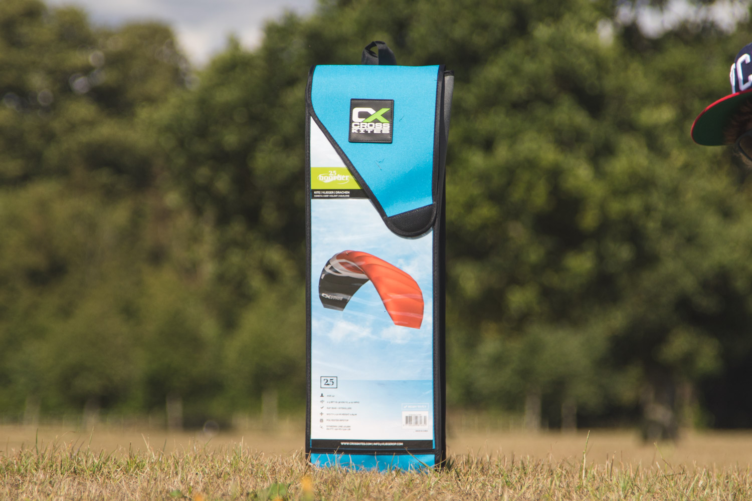 The Cross Kites Boarder Trainer kite is supplied ready to fly with the bar and lines attached to the kite so all you need to do is unwrap and fly. The sizes are wingspan so wing tip to wing tip in metres so the kites start at a 1.5m upto a 2.5m wide kite. Younger flyers will be better suited to the smaller 1.5m and 1.8m kites while adults will find the 1.8m and above more fun in average winds.