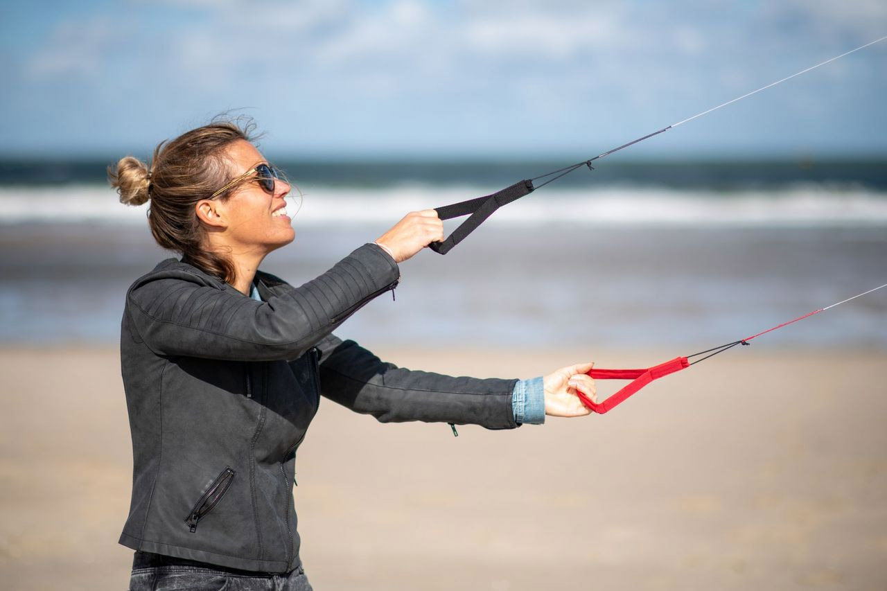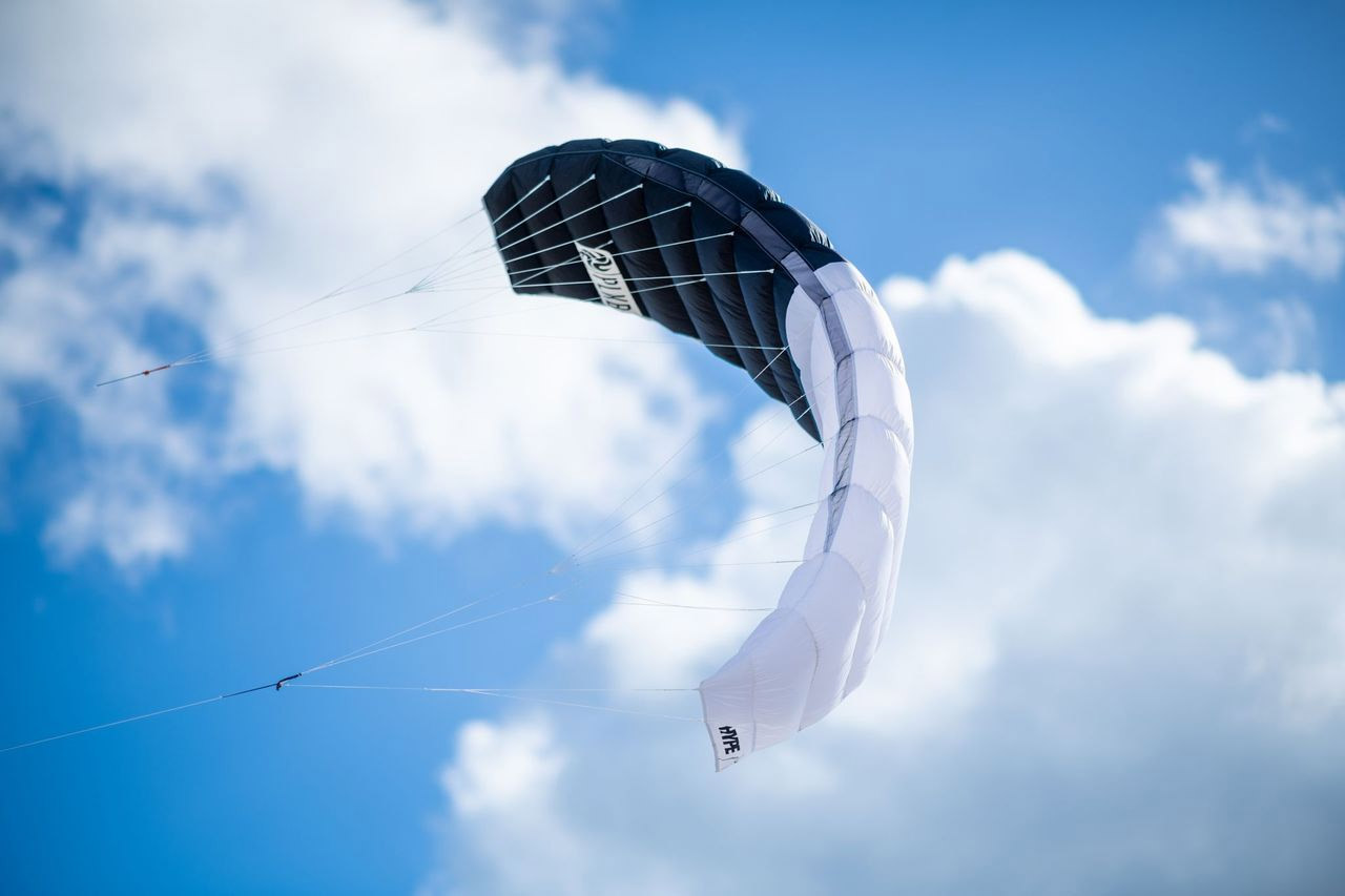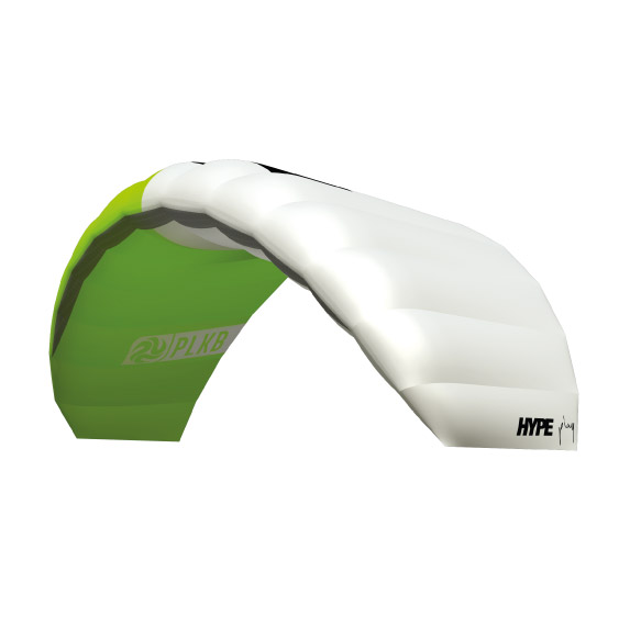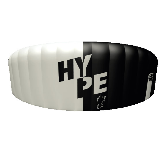 The Peter Lynn Hype ranges in size from the 1.3m up to the 2.6m and has a lot of power in a strong wind. The bigger the kite the more power generated but the tougher to hold on to for younger/smaller riders as the wind increases. The smaller kites like the 1.3m need a bit more wind to get them airbourne than the larger kites so the 1.6m and the 1.9m are the most popular sizes due to a balance of easy flying in light winds and also not too powerful in strong winds. The large 2.6m size comes with padded wrist straps and slightly longer lines to suit it better.