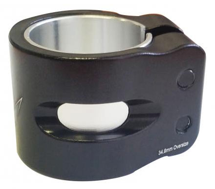 The Blunt Black Double Clamp is a simple, minimalistic and solid bar clamp for you scooter. The black design matches many scooter builds and is always in fashion. The clamp comes with a shim so fits standard sized and oversized steel or alloy bars no problem. The two bolts are 6mm size so great for getting it super tight without easily rounding the bolts.