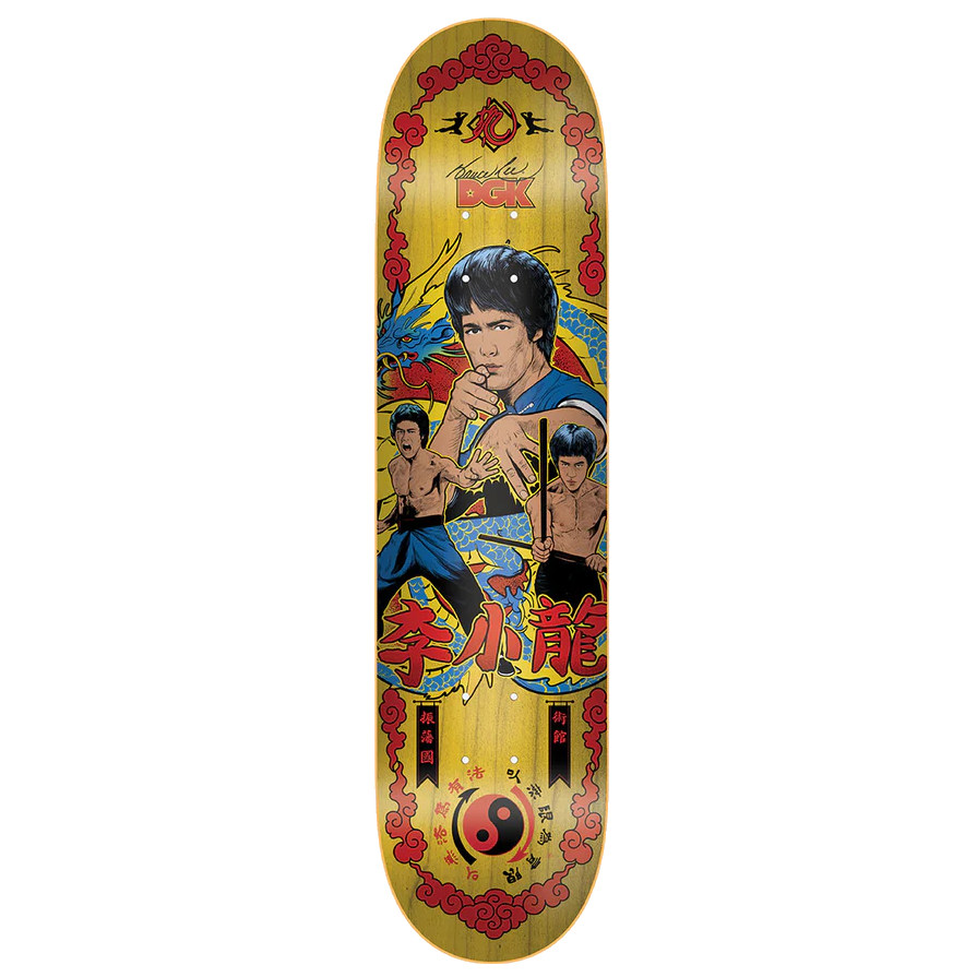 Official Bruce Lee Fury Skateboard Deck is super cool on the wall or underfoot. Quality DGK skateboard construction in 8.1in x 31.85in