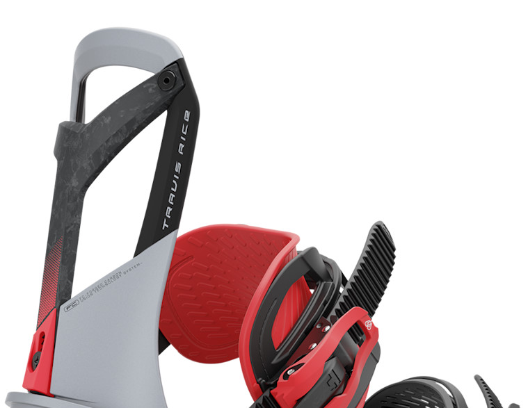 New to this 24/25 season is the Asymmetrical Forged Hybrid Highback, made from Eco-Friendly Duraflex Blue and Italian made forged carbon combine , it has been specifically made to compliment Travis Rice's Aggressive Freeride/freestyle riding. The Forged Carbon spine offers a stiff and responsive feel which allows instant edge to edge controll when riding, while the nylon frame allows for the flexibility and comfort you want when riding freestyle. The Updated asymmetrical shape allows a more natural fit following the natural angle of the leg for a anatomical fit and flex.