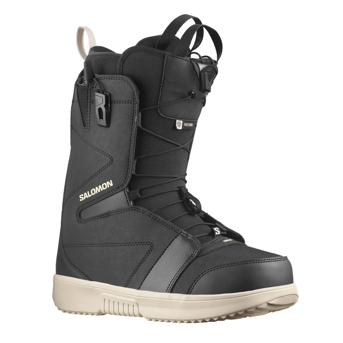 The Salomon Faction brings all day comfort and durability at a great price for beginner and progression riders. Super lightweight with simple speed zonelock lacing and Fit-To-Ride construction make this an amazing boot for starting out or hitting the park. Inspired by skate trainers the D-Light outsole offers great performance and super lightweight and shock absorbing. A softer flex along with Ultralon heat mouldable liner for comfortable long days on the mountain.