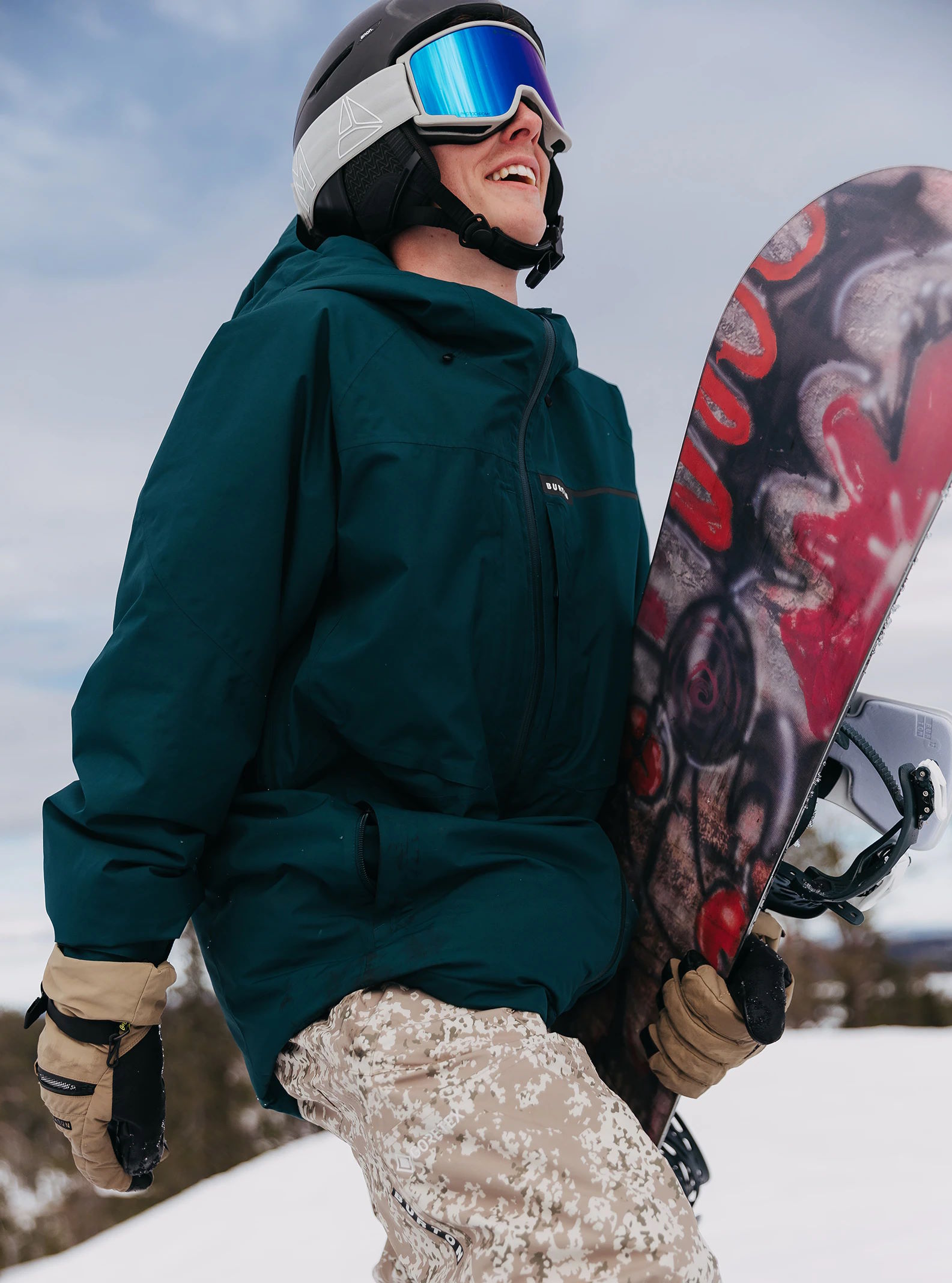 The Burton Pillowline Gore-Tex Mens Snowboard Jacket in Imperial Purple, Deep Emerald, True Black is perfect to keep you warm and dry all day long. The Gore-Tex 2 Layer fabric is Guareanteed to keep you dry and fully taped seams keep you dry even in the worst conditions. This jacket has all the rider designed details like water resistant zips and sherpa fleece lined collar and all the pockets you could ever want!