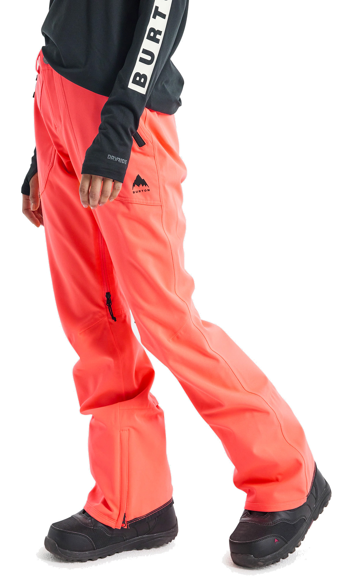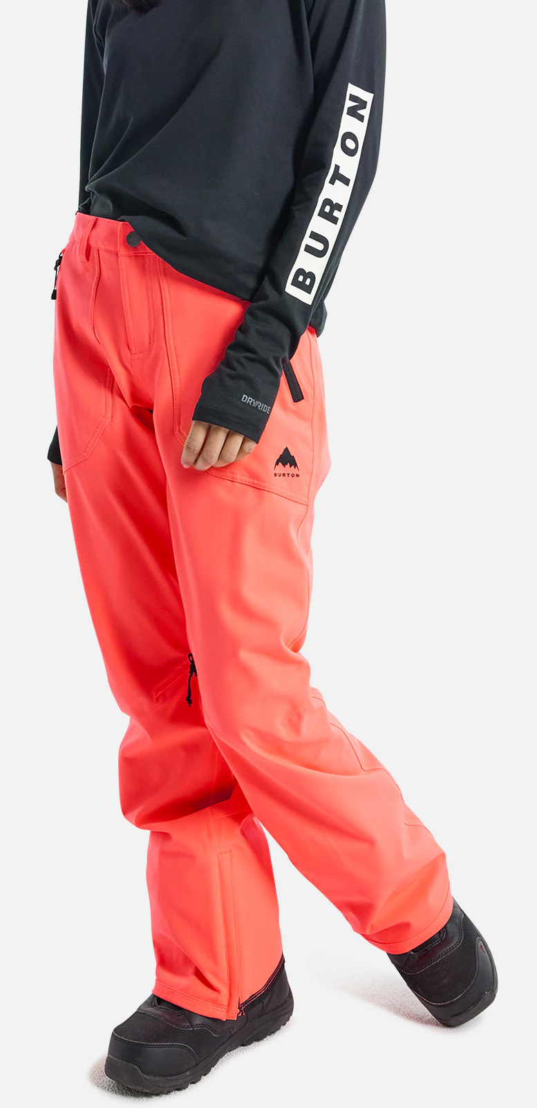 Burton Vida 2L Stretch Tetra Orange Womens Snow Pants, with a slim fit these pants will fit comfortably and a zonal-mapped stretch mesh and taffeta lining which adds mobility and moisture wicking capabilities keeping you comfortable and dry at the same time. while it keeps you warm these pants also feature two inner thigh vents to allow for some time to cool down from when you've been hitting the slopes all day.