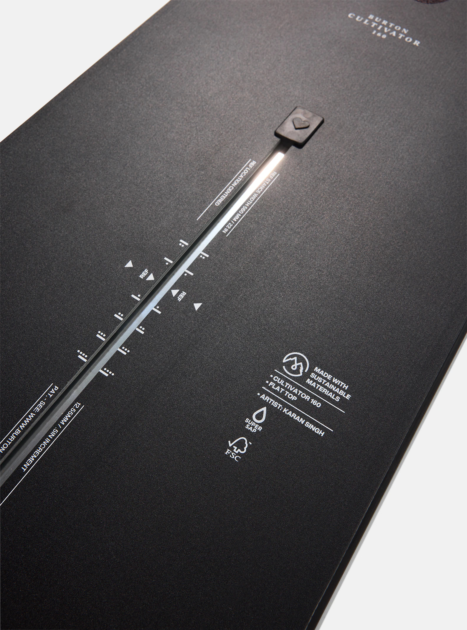 ABOUT THE GRAPHIC: Inspired by the riding progression, the Cultivator graphics reflect the progression that is the foundation to building your bag of tricks and pushing your skills into new terrain. Inspired by the winter landscape, watercolor graphics by Burton product designer Ali Leach reflect the layers of the learning curve, and 3D Chain imagery by artist Karan Singh reflects the board's strength for building your skills and confidence to explore new terrain.