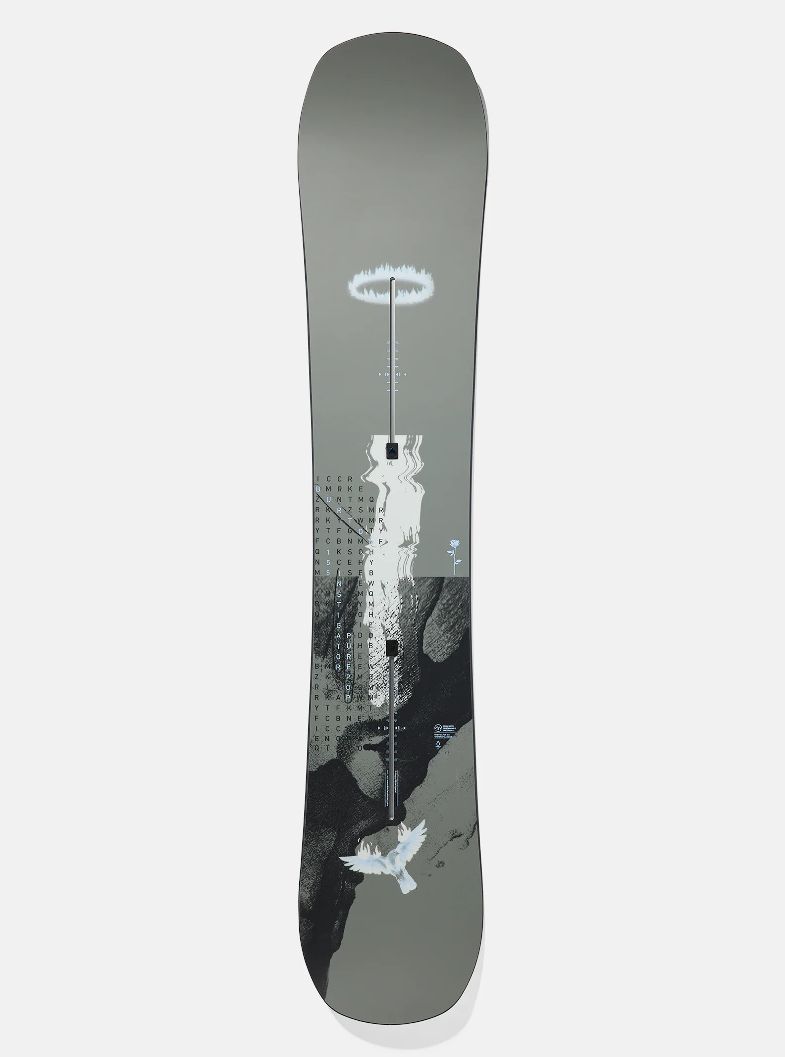 With its all mountain shape and the nose being longer than the tail, it gives you more pop from the back while giving you even more float on those jumps while adding to those sick carves at the same time. 5mm Taper makes for easy turning, giving you the feel and focus of a directional board without anything holding you back from going in switch and adding new possibilities to your lines