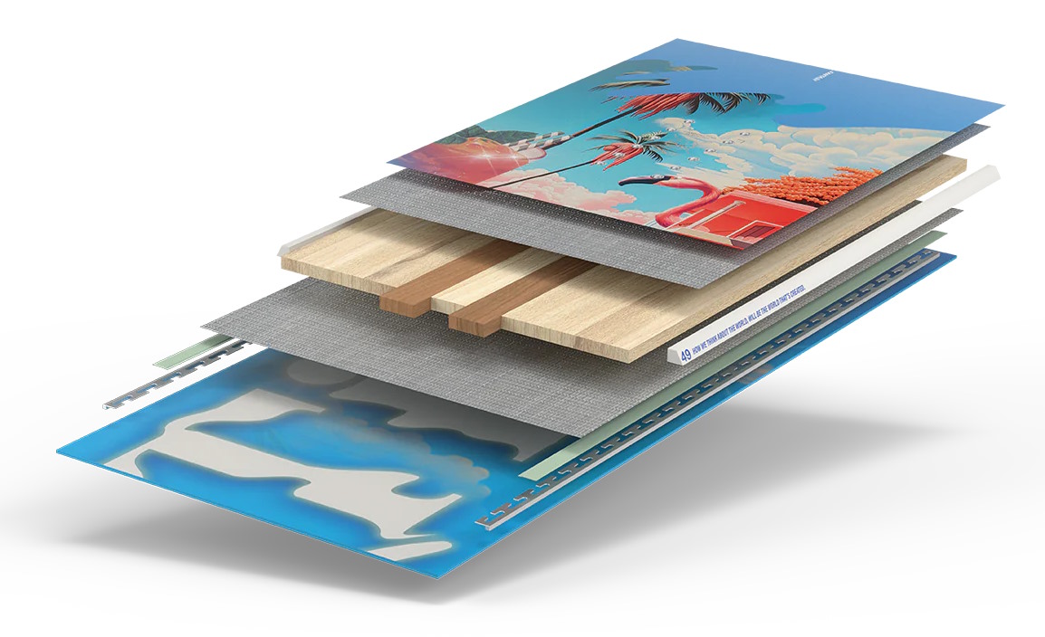 SPECIAL BLEND FIBERGLASS MAGIC BEAN™ RESIN Fibreglass placed above and below the core to guarantee optimum strength and durability as well as a high level of performance. The Magic Bean Resin is made from 60% recycled materials and beans!