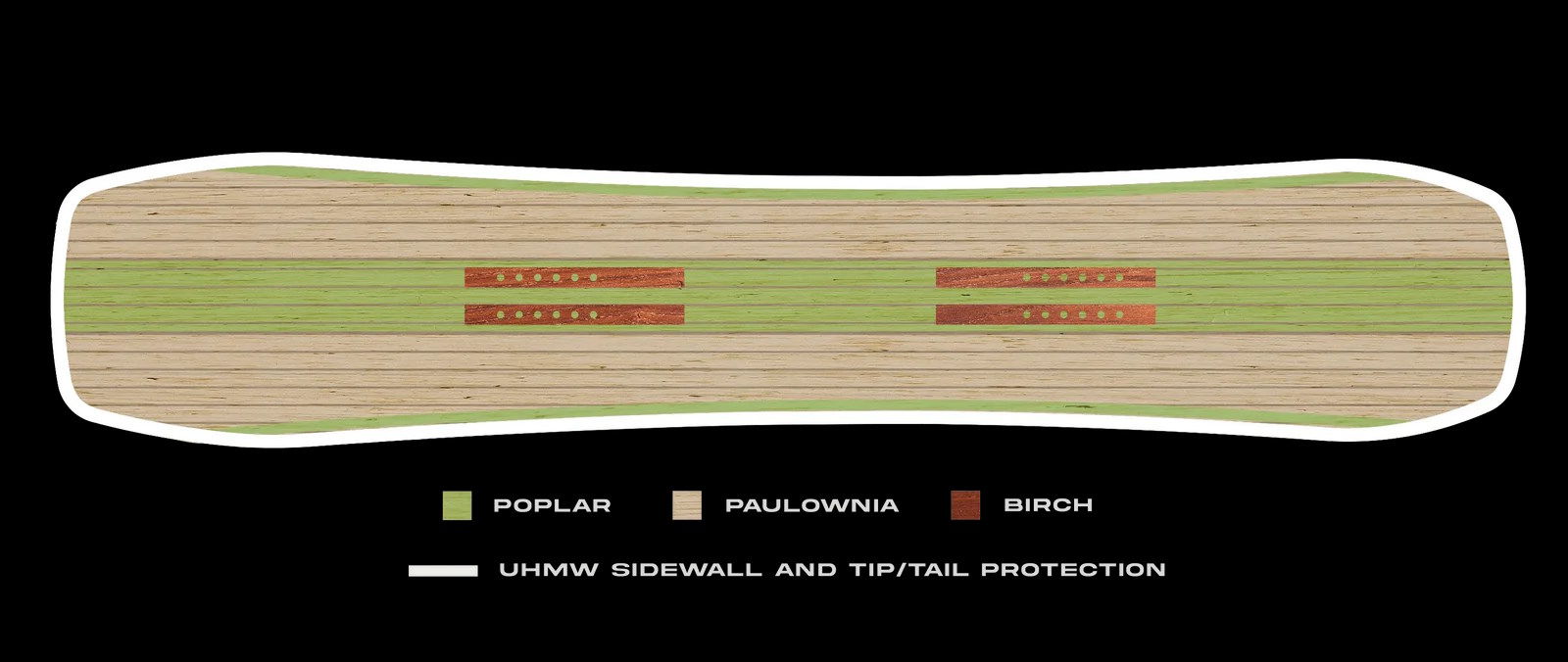 - Laminates: Carbon Max Tech, Bi-Lite Fiberglass, STS Pre-tensioned Fiberglass