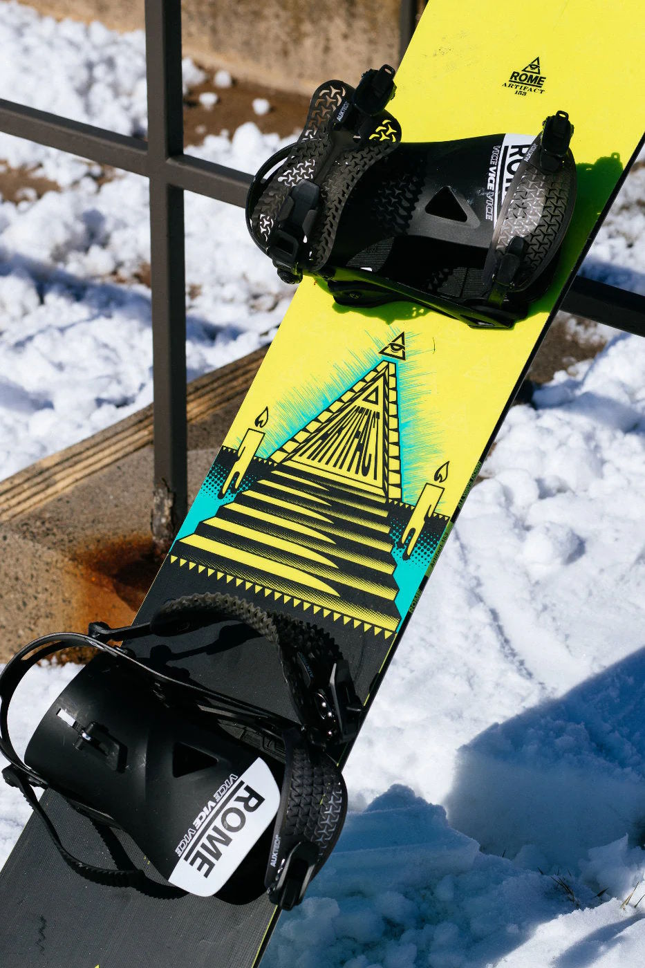 The Rome Artifact is a legend in freestyle and street spots around the world. True twin full camber snowboard with softer flex and serious pop in the nose and tail. The flax impact plates under the bindings are there to stomp the hardest landings and the powerside extruded base feels faster than you would expect and is tough as nails for hitting those boxes and handrails. The Rome Artifact is the board if you really want to up your pop and jib game in the park or on the sidehits and streets. This board has been in the range for years for a reason an is a legend not just in Rome's line but in general.