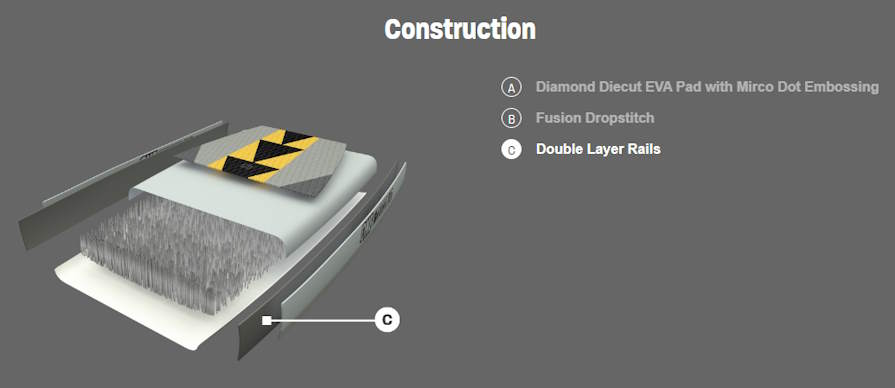 The Naish One uses a flat base design for better plaining and reduced strain on the arms while a rockered nose eats up any oncoming chop in bumpy waters giving you that super smooth and stable ride on the rivers or in the ocean. The One uses a dual layer construction; the first of which features a premium drop stitch deck and bottom, layer two uses a hybrid skin for enhanced durability, scratch resistance and shape control. Twin double rails give the One board added strength and stiffness maintaining a solid shape while SelyTech KS-1 increases the boards long-term durability and seam reinforcement.