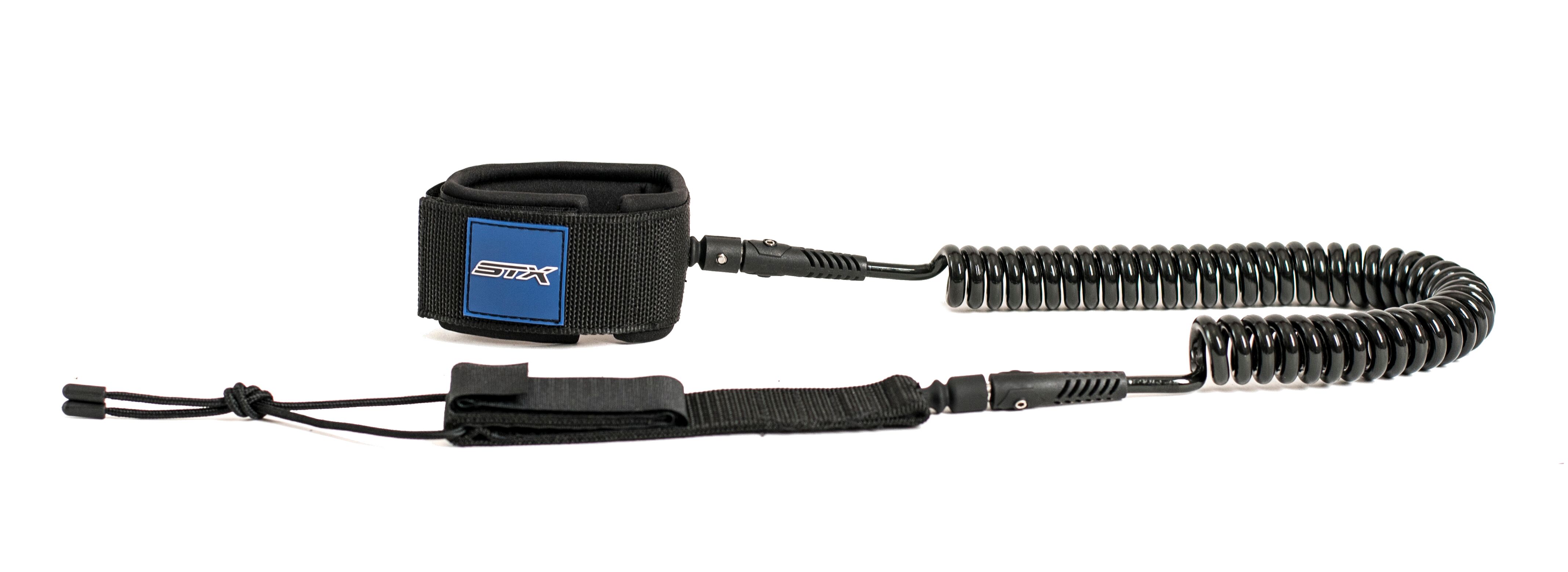 The STX Coiled Leash in Black is specifically designed for use in shallow waters. Whilst this leash would work perfectly in deep water too, the STX Coiled leash boasts a much shorter length giving you far less leash to tangle, trip or get caught on the river/sea bed.