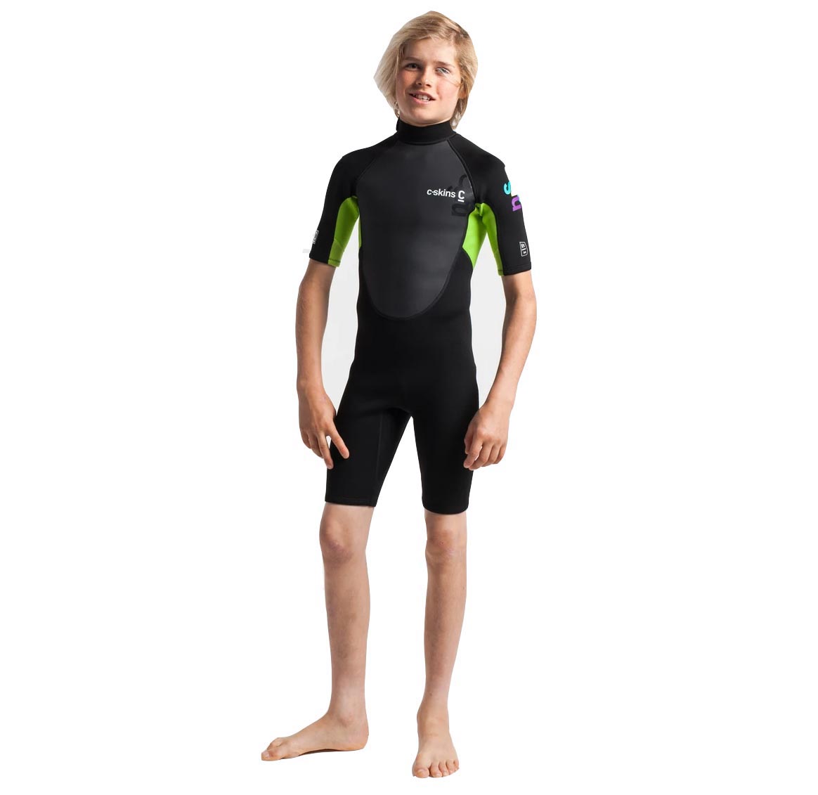 Features of The C-Skins Element 3:2 Junior Unisex Shorti Black Lime Wetsuit: